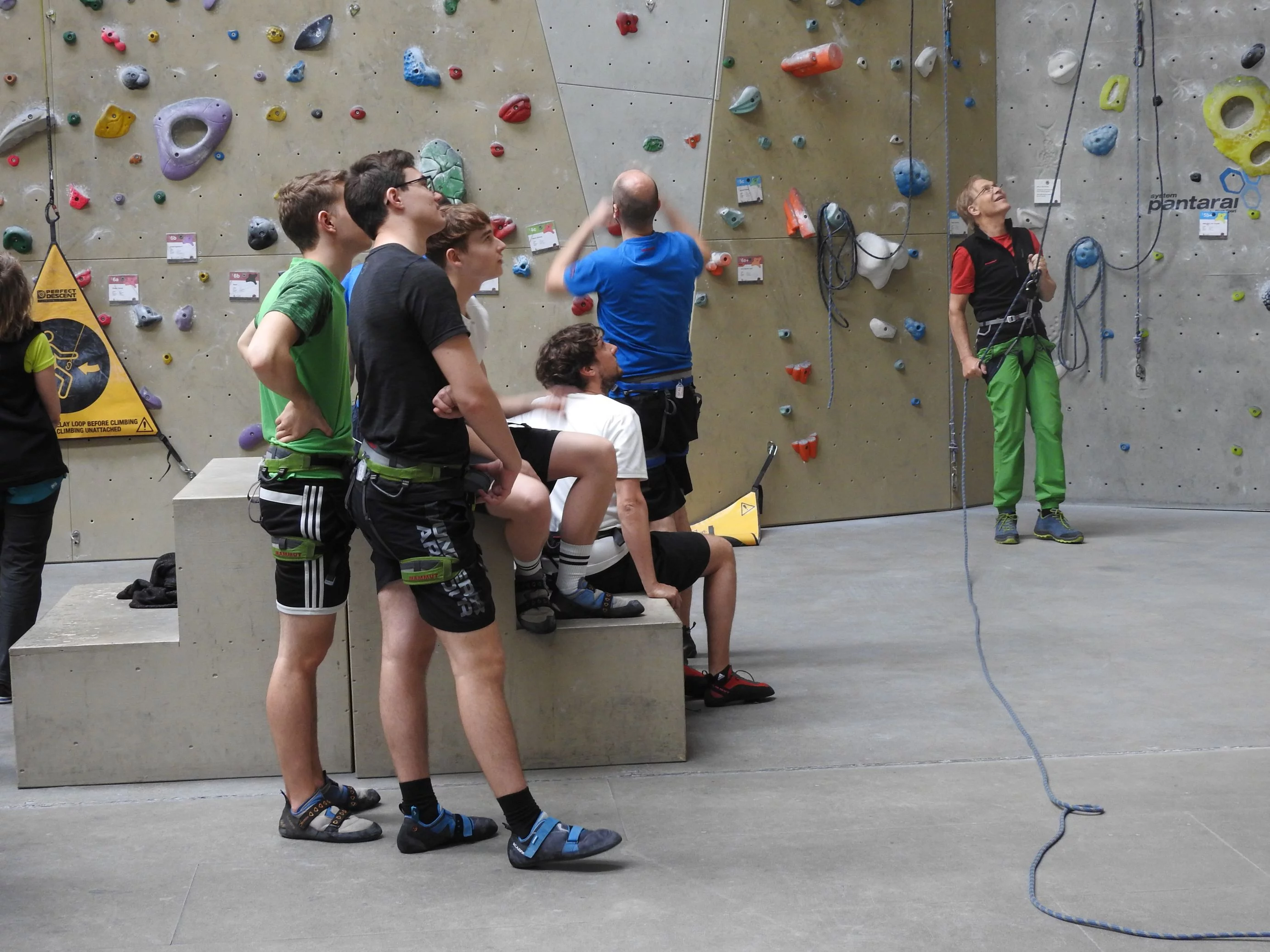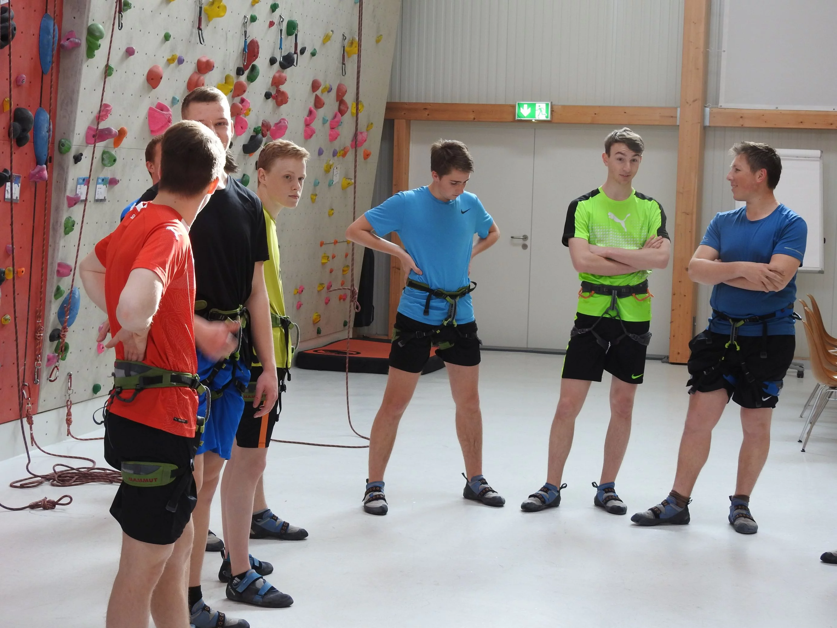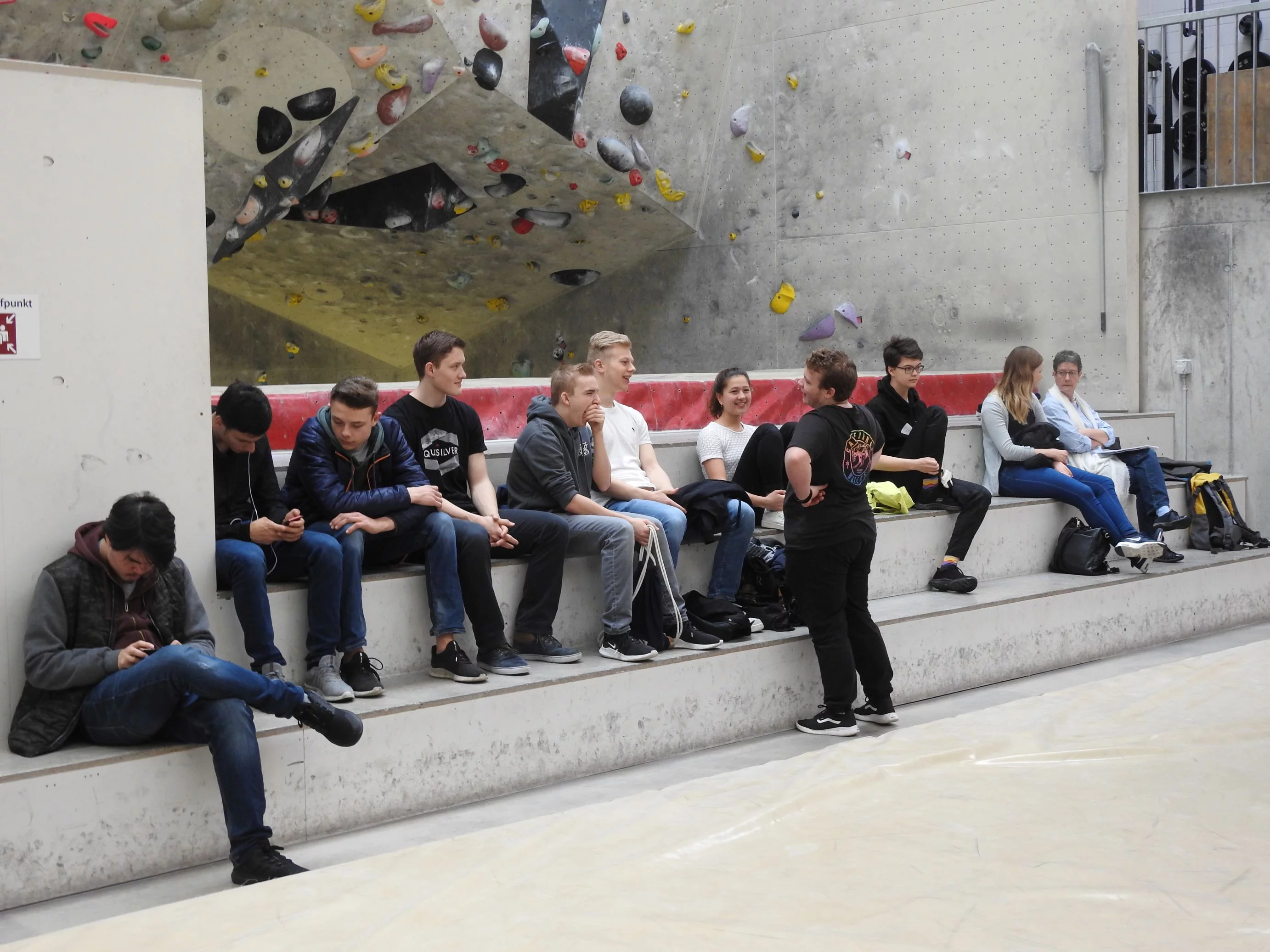 Am Mittwoch, 17. April fuhren wir der Bahn nach Lenzburg, wo wir mit allen Teilnehmenden zum Kraftreaktor Klettereldorado(link is external) spazierten. Dort begrüsste Paul Kramer alle Anwesenden, stellte bereits den neuen Berufsbildner der Physiklaboranten vor und wünschte allen einen wunderbaren Tag. Danach wurden die Kletterer in verschiedenen Gruppen in die Kunst des Kletterns und Boulderns eingeführt. Gegen Mittag führte uns das Programm ins Lenzburger Kosthaus(link is external) zum feinen Mittagessen.