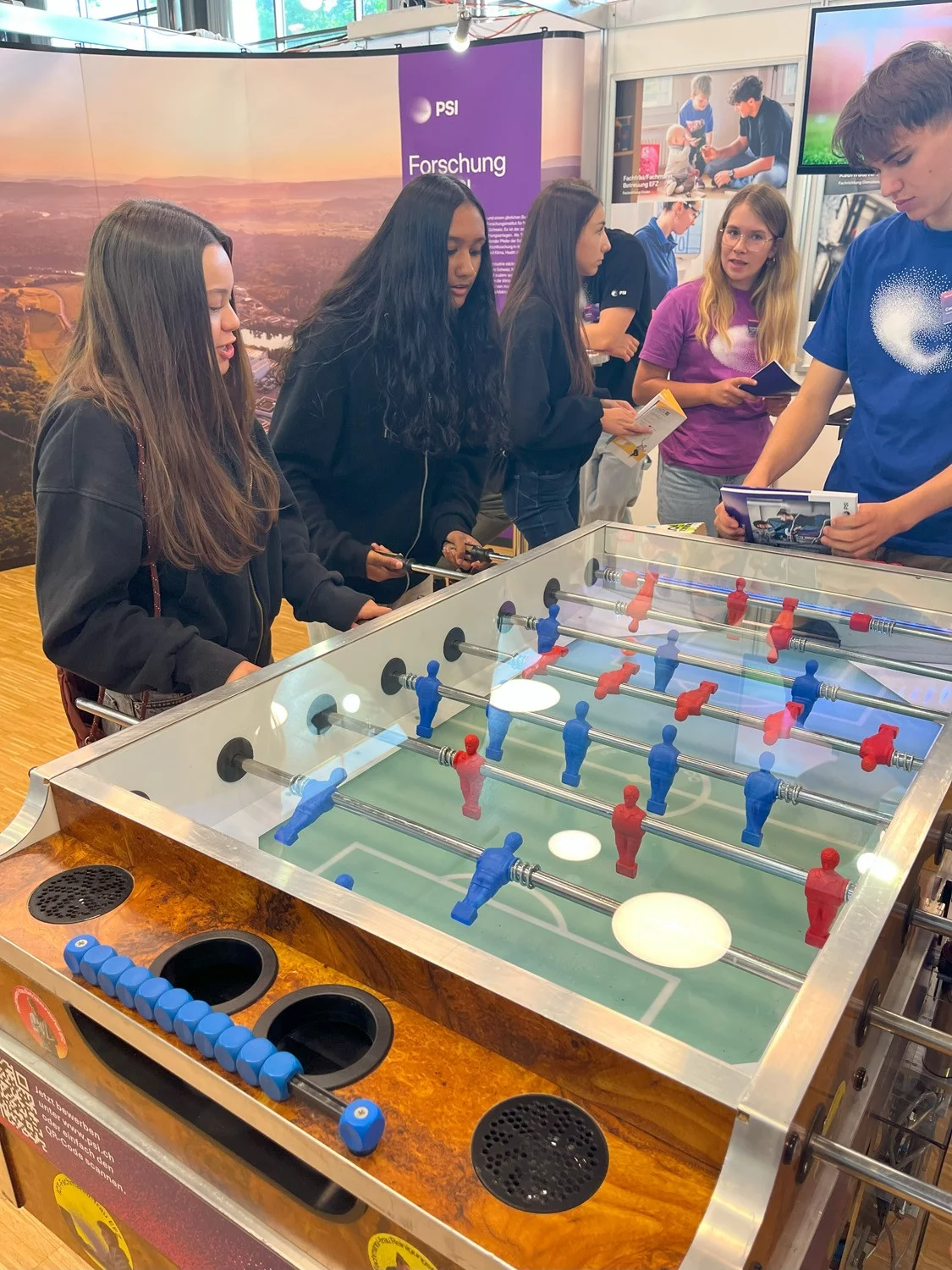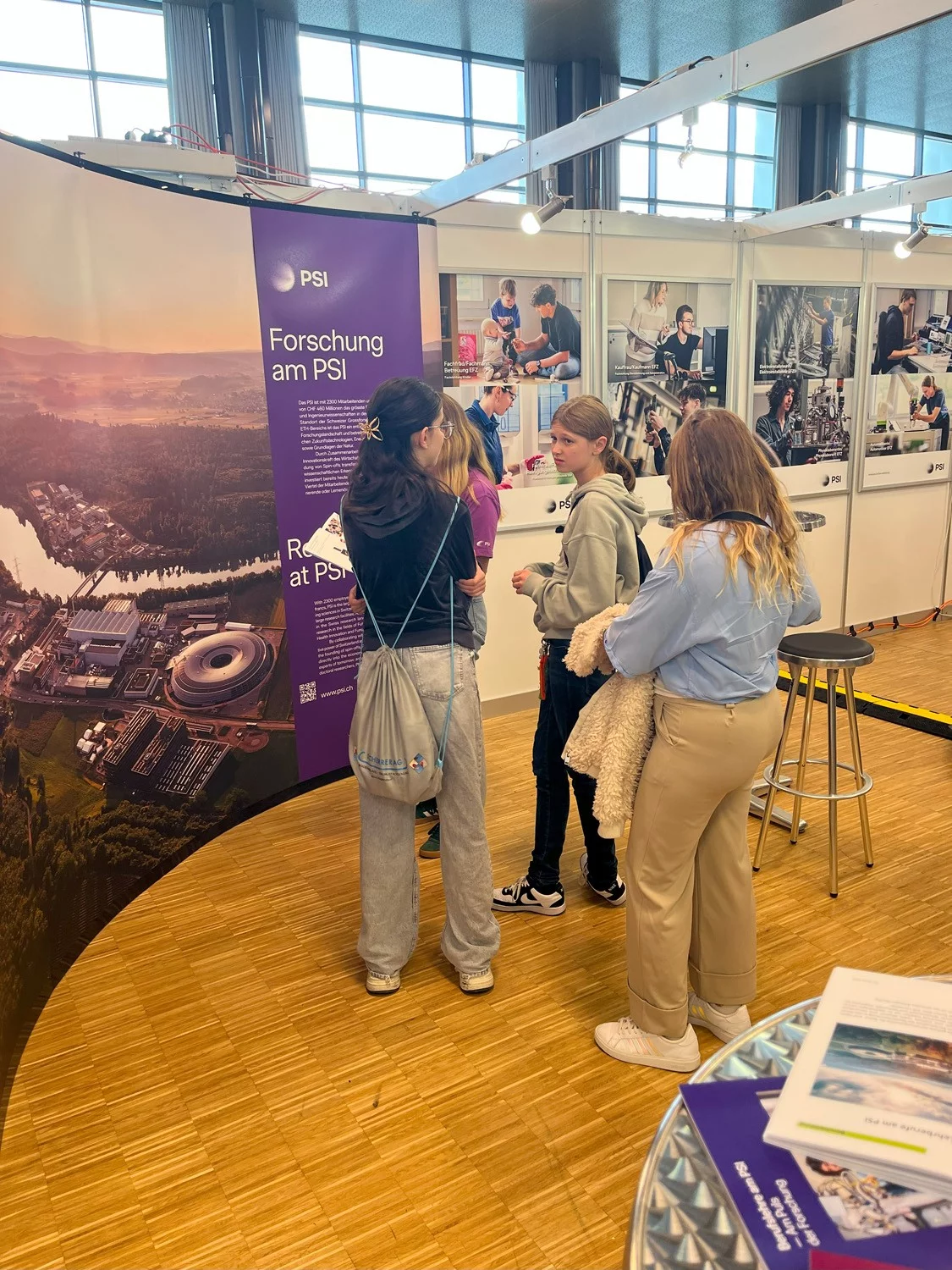 Auch an unserem Stand herrschte reger Betrieb: Zahlreiche Besuchende informierten sich über Lehrstellen und unsere Ausbildungsprogramme. Das Team des Schülerlabors stellte Lehrpersonen das breite Angebot für Schulklassen vor und konnte dabei viele spannende Gespräche führen.