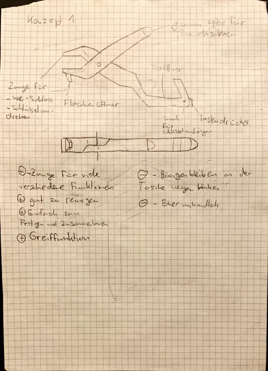 Nun hatten wir die Qual der Wahl, welches der unterschiedlichen Konzepte wir nun tatsächlich realisieren sollten. Nach der bitterschweren Entscheidung setzten wir uns an die Rechner, starteten das CAD Programm Catia V5 und designten ein dreidimensionales Modell unserer Bleistiftskizzen. Nun standen wir vor reihenweisen weiteren Problemen. Sobald wir eines lösten, kamen gefühlt drei neue dazu. Beispielsweise war es fast nicht ausfindig zu machen, welches Material zur Bedienung von Touchscreens geeignet ist oder wie gross der Flaschenöffner sein muss, damit man auch tatsächlich Flaschen öffnen kann.