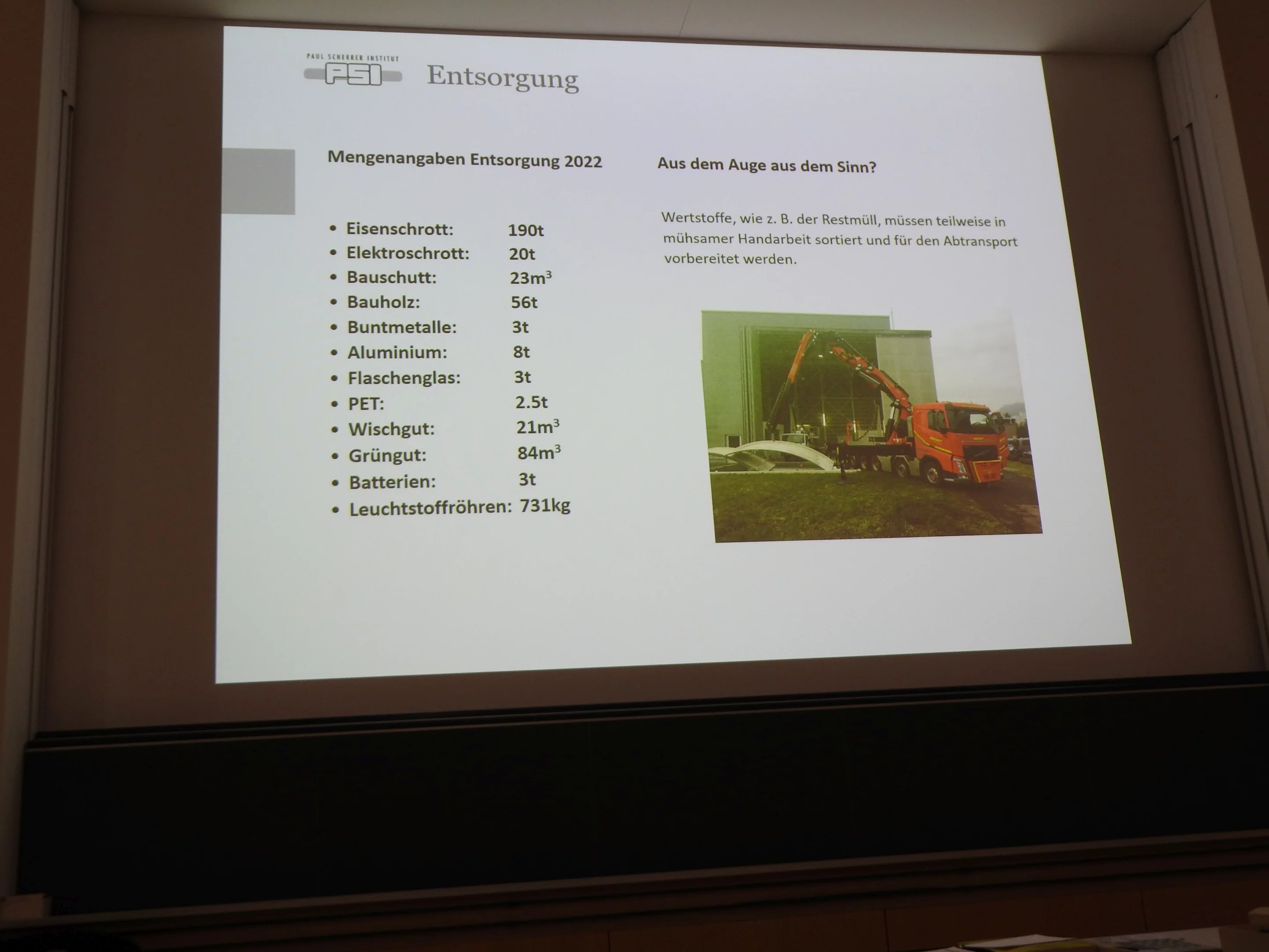 Danach berichtete David Baumann und Lai Nguyen mit vielen Informationen über die Betriebsdienste am PSI. Es war interessant, wieviel Unterhaltarbeit geleistet werden muss, damit die Infrastruktur bestehenbleibt. Auch die Lagerbewirtschaftung muss gut geplant und unterhalten werden. Was das ganze Jahre entsorgt wird ist immens, zum Beispiel über 2.5 Tonnen PET Flaschen im Jahr.