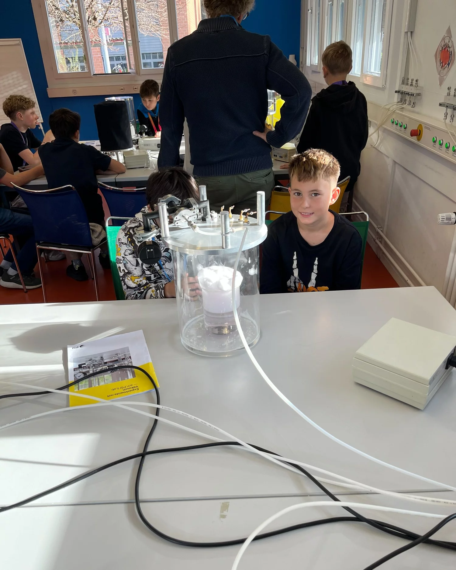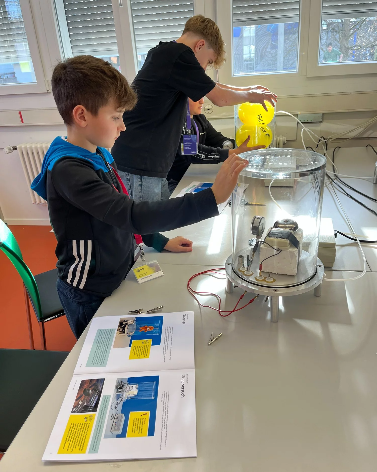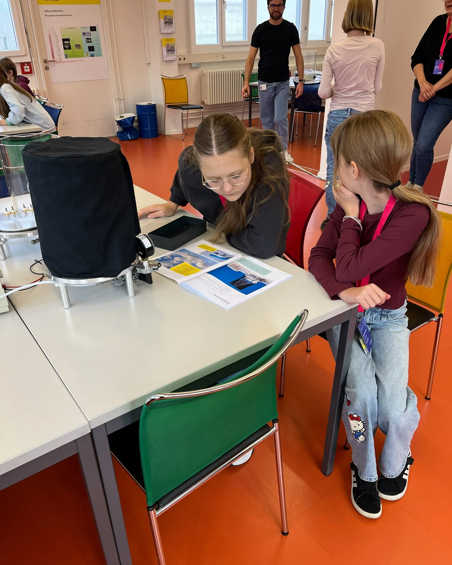 Von der Arbeit im Labor bis hin zu Experimenten mit Vakuum, Wellen und Elektromagnetismus konnten unsere jungen Gäste am 13. November 2025 an insgesamt 14verschiedenen Stationen unter Anleitung unserer Fachleute selbst aktiv werden.