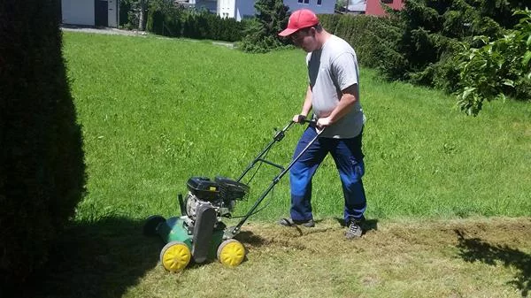 • Rasen mähen (mit dem Handmäher und dem Rasentraktor)