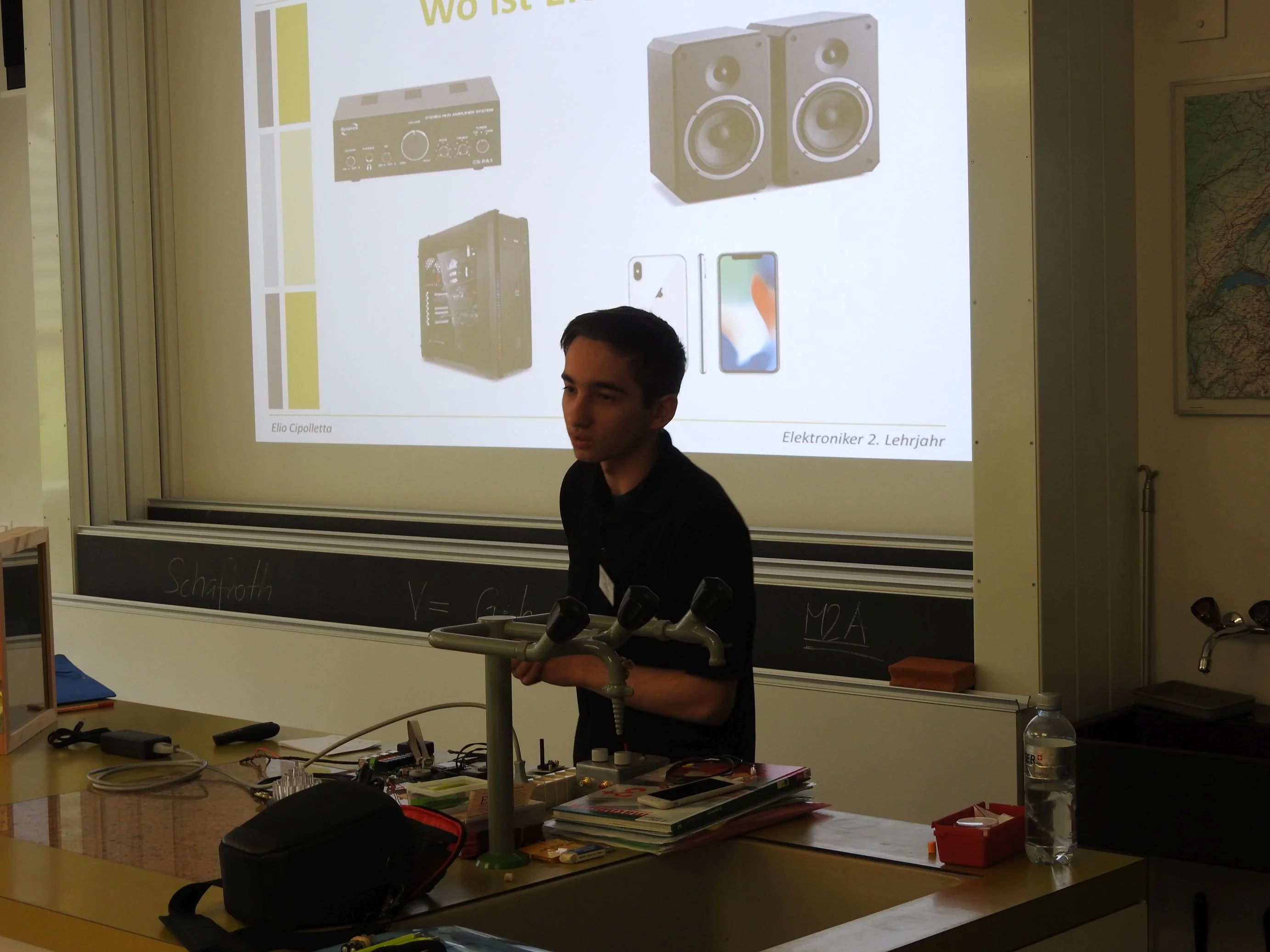 Elio C., im 2. Lehrjahr als Elektroniker EFZ, stellte seinen Beruf vor. Er besuchte auch diese Schule und weiss wie es den Schülern geht und konnte gekonnt die Fragen beantworten. Mit Begeisterung stellte er seine Werke, Arbeiten und Erkenntnisse vor und zeigte die viele Möglichkeiten, die dieser Beruf mit sich bringt. Er würde wieder eine Lehre beginnen und diesen Weg einschlagen.