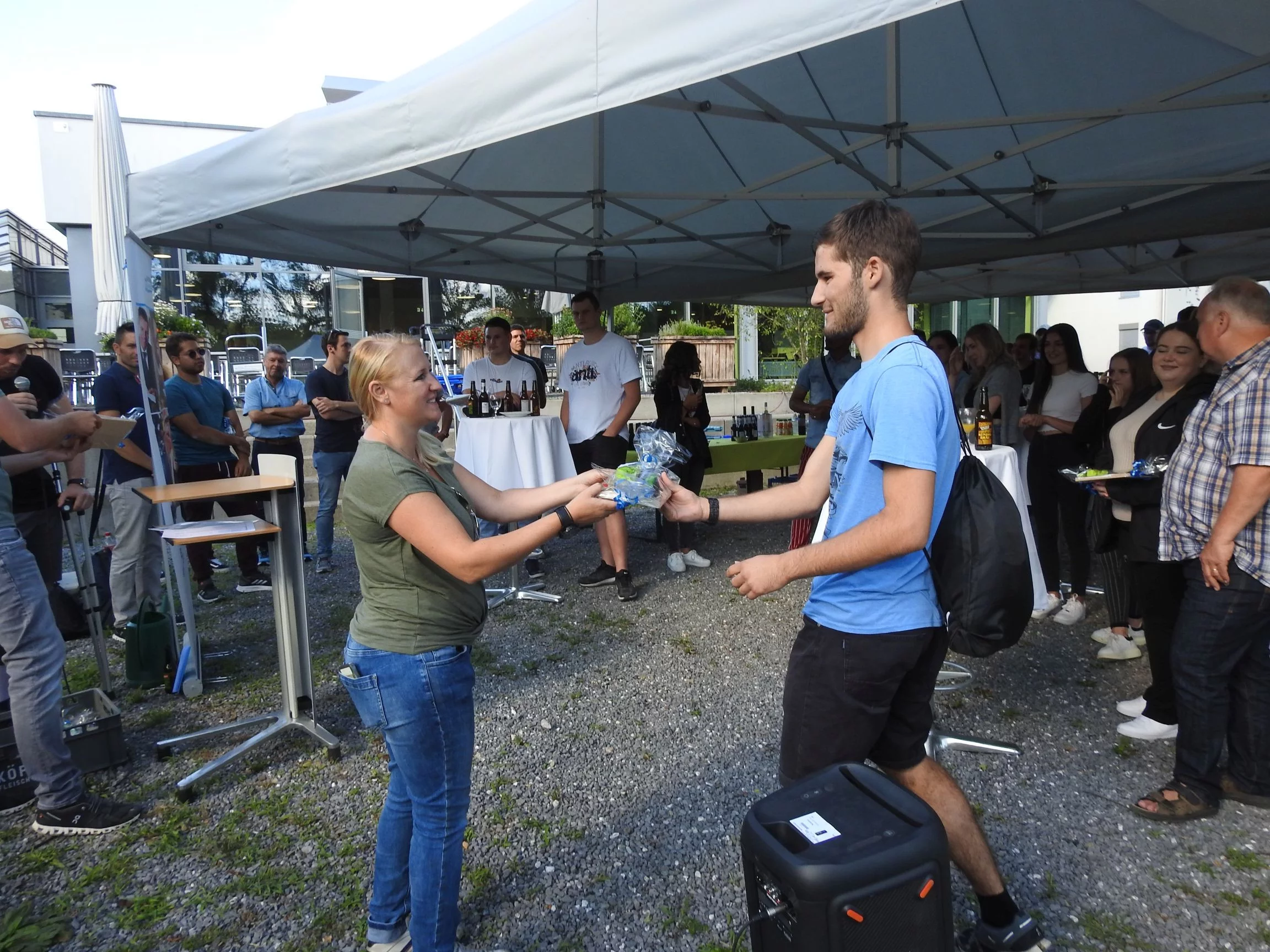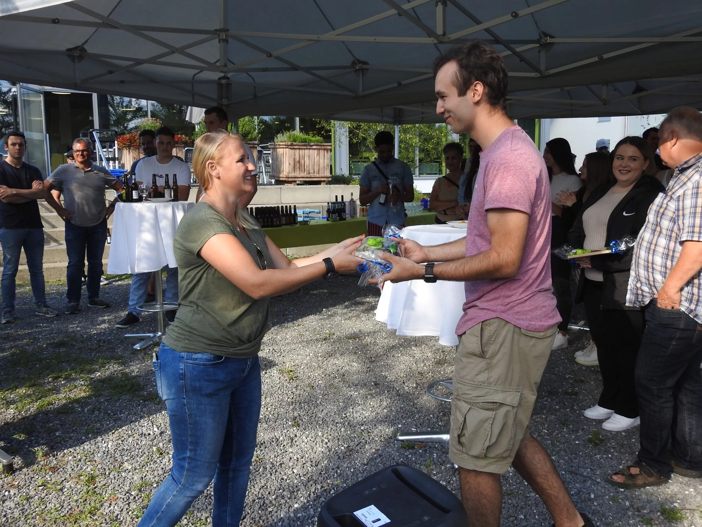 Seitens der Gewerbevereine begrüsse uns Patrick Stutz. Er freute sich, dass der Anlass wieder im gewohnten Rahmen aber an neuem Ort durchgeführt wird. Jeder Lernende wurde grosszügig beschenkt.