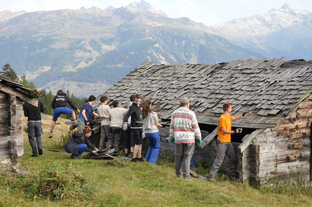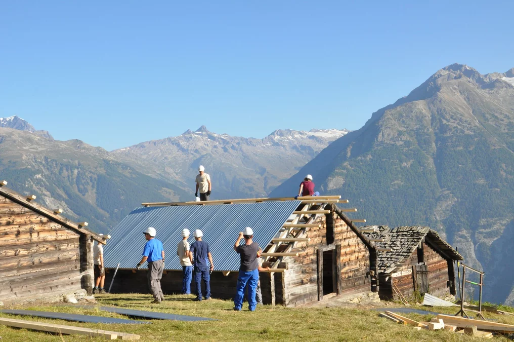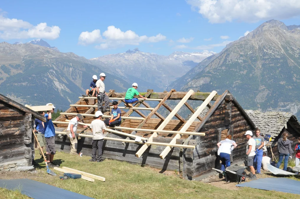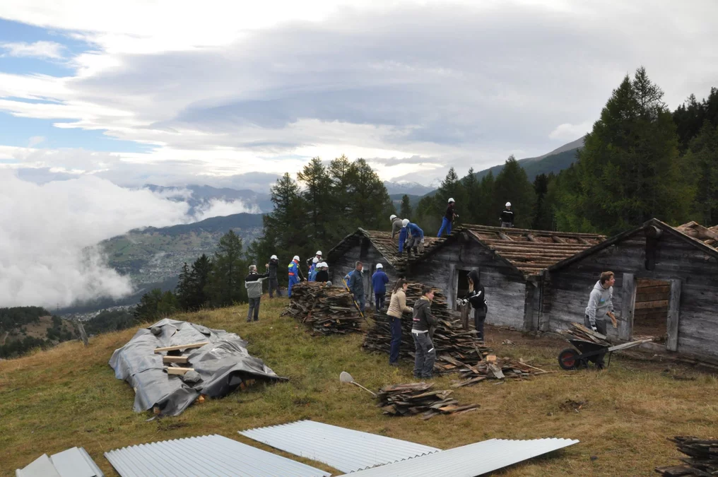 Bei wunderschönem Herbstwetter wurden folgende Arbeiten auf der Senggalp ausgeführt: Schindeln und Balken auf alten Kuhställen entfernen und neue Dächer setzen, Fundamente mit Steinen und Beton erneuern, Bretter und Schindeln zum Verfeuern vorbereiten. Ebenfalls konnten wir dem Tourismusverein beim Herrichten von Wanderwegen helfen. Viele neue Eindrücke, vertiefte Bekanntschaften und schöne Erlebnisse nehmen wir aus dem Wallis mit.