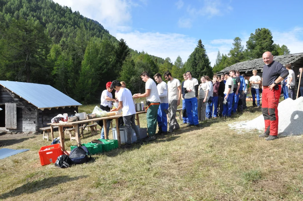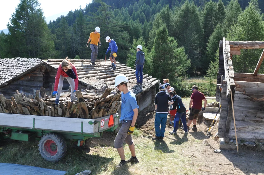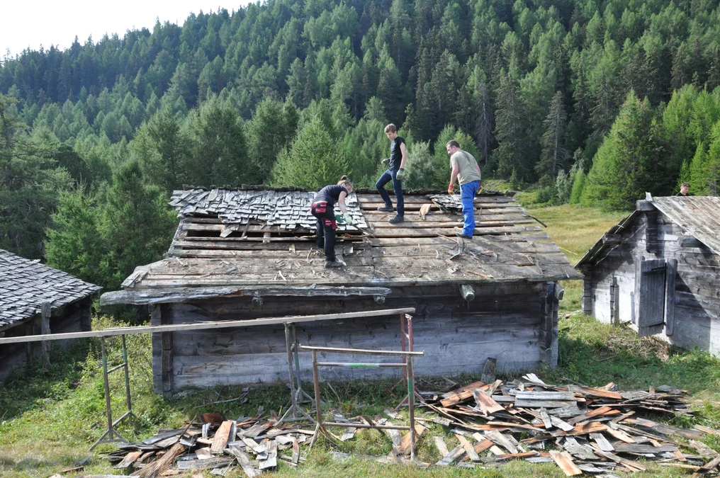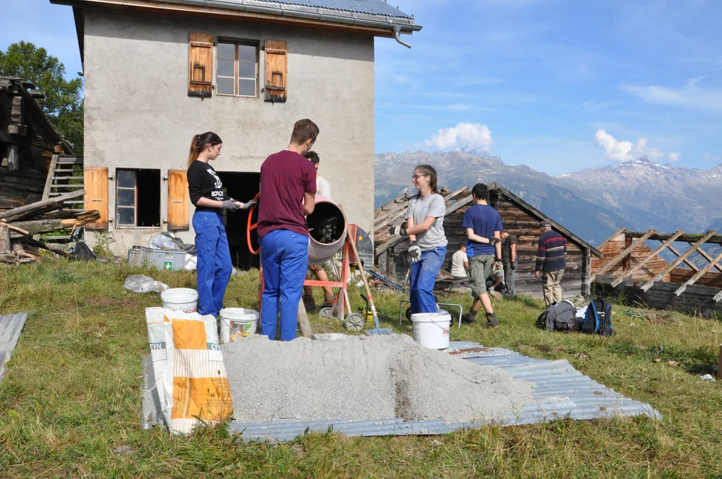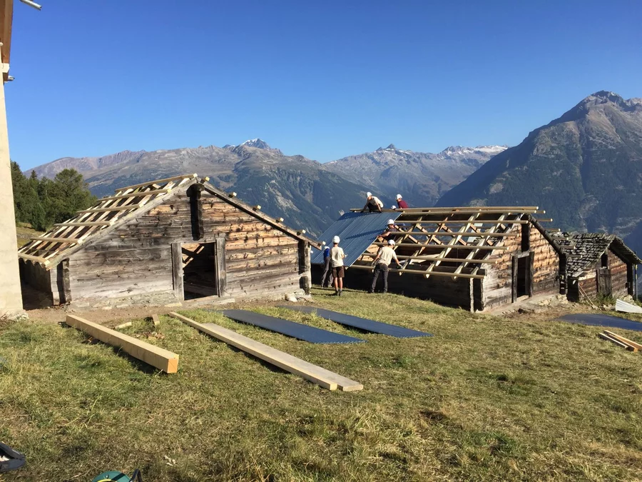 Bei wunderschönem Herbstwetter wurden folgende Arbeiten auf der Senggalp ausgeführt: Schindeln und Balken auf alten Kuhställen entfernen und neue Dächer setzen, Fundamente mit Steinen und Beton erneuern, Bretter und Schindeln zum Verfeuern vorbereiten. Ebenfalls konnten wir dem Tourismusverein beim Herrichten von Wanderwegen helfen. Viele neue Eindrücke, vertiefte Bekanntschaften und schöne Erlebnisse nehmen wir aus dem Wallis mit.