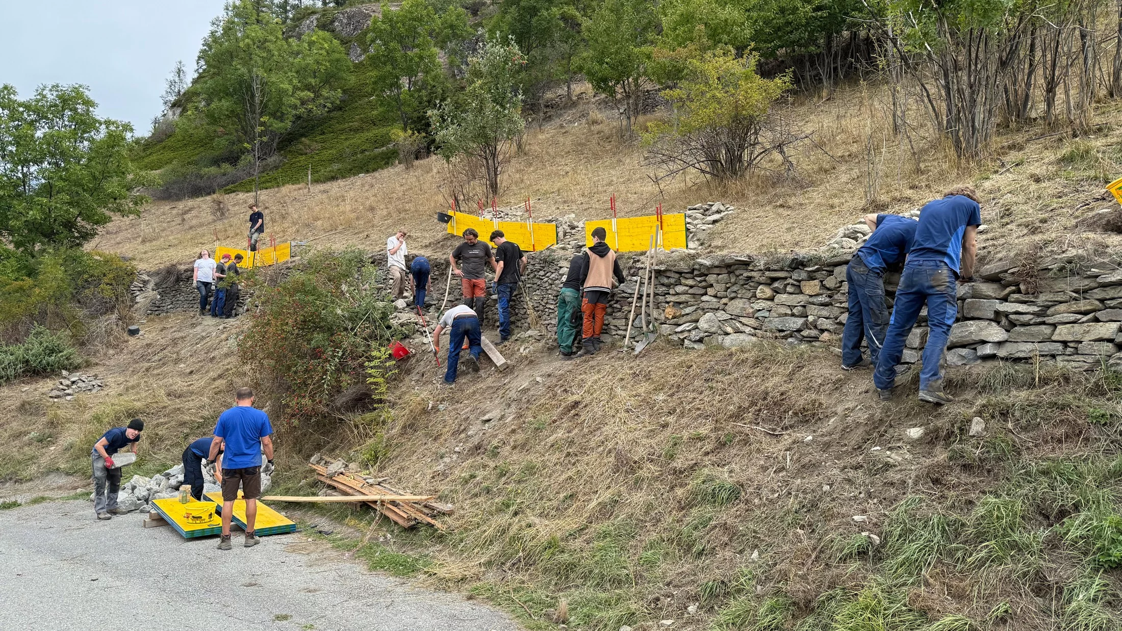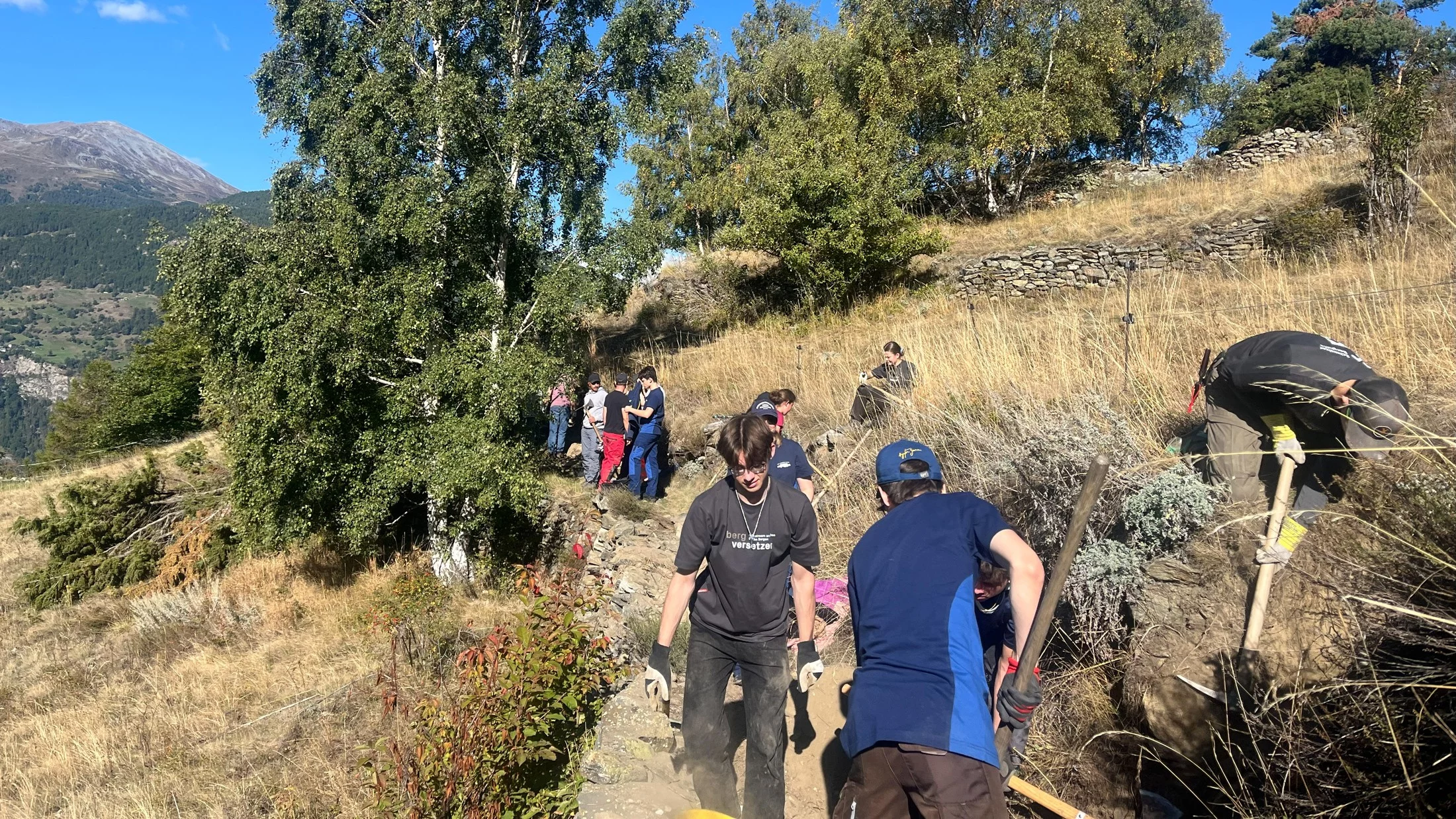 Die Teilnehmenden erwartete eine Vielzahl spannender, teils ungewohnter Arbeiten: Trockensteinmauern wurden instandgesetzt, Wanderwege ausgebessert, Wiesen in Skigebieten gepflegt und verbuschte Alpweiden freigeschnitten, um eine Verwaldung vorzubeugen.
