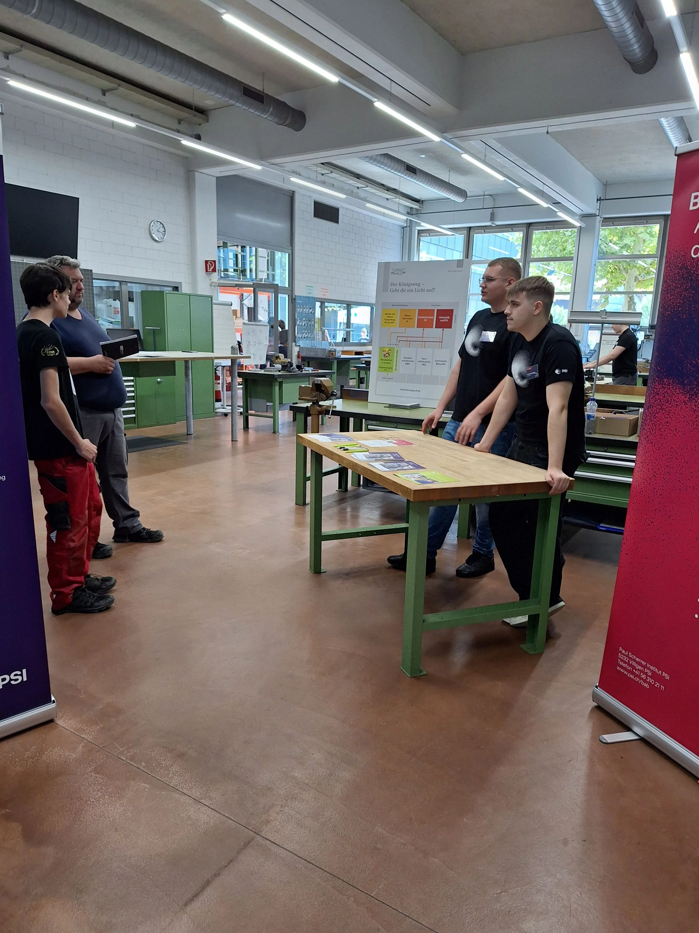 Von 09.30 Uhr bis 15.00 Uhr am 21. September 2024 konnten wir im Ausbildungszentrum der Swissmechanic vielen Jugendlichen und deren Eltern unsere Berufe, allen voran der Beruf des Polymechniker EFZ, in diversen Gesprächen näherbringen. Durch unsere vielseitige Ausbildung in einer neuen Lehrwerkstatt im PSI, sowie das Aufzeigen des Königsweges in der Berufsbildung erhoffen wir viel Begeisterung für diesen tollen Beruf.
