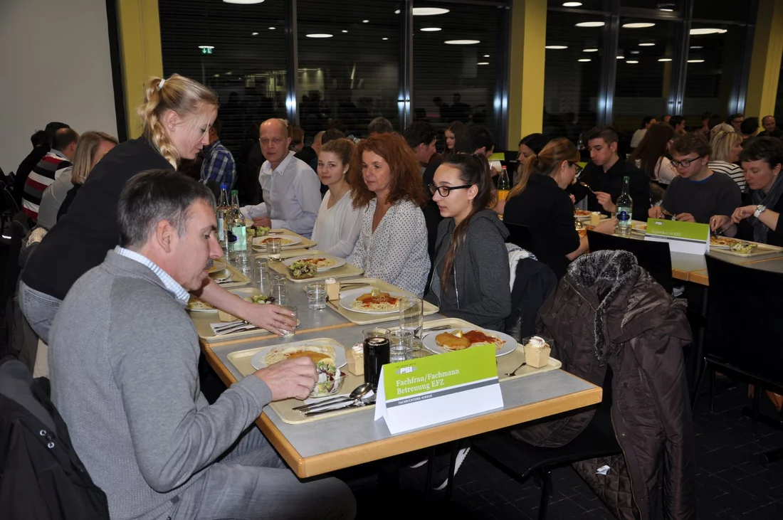 Die Berufsbildnerinnen und Berufsbildner zeigten im Anschluss ihre Arbeitsplätze, wo auch die Verträge unterschrieben wurden. Zum Abschluss genossen die Anwesenden ein feines Essen im Personalrestaurant.