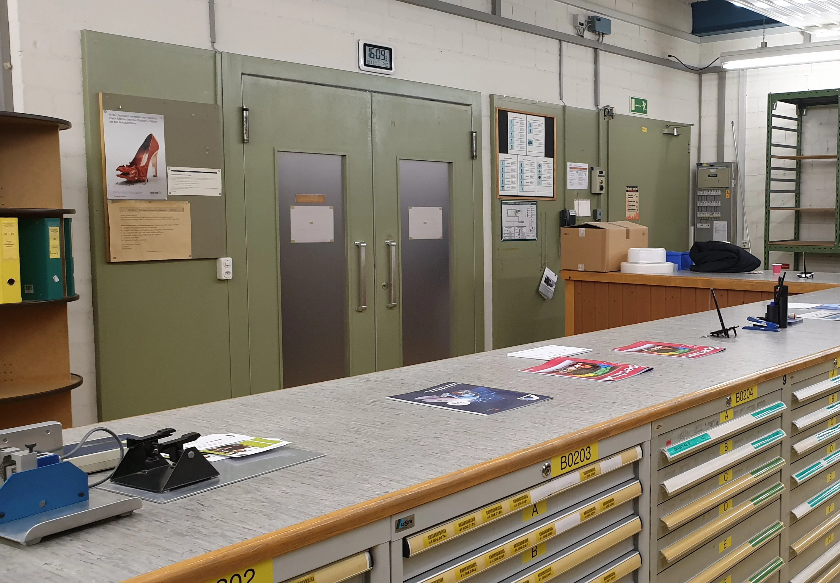 Im Zentrallager gibt es verschiedene Tätigkeiten, welche wir ausführen. Darunter gehören z.B. Bestellungen für Kunden zu Kommissionieren und versandbereit zu verpacken, Ware entgegenzunehmen, zu kontrollieren, einzubuchen und einzulagern. Es geht aber auch darum Kunden zu bedienen und zu beraten, welche Unterstützung im Bestellprozess oder bei der Findung des richtigen Artikels brauchen. Für das haben wir einen Kundenschalter. Der Kundenschalter ist täglich geöffnet von 09:00– 11:30 Uhr und von 13:00– 15:00 Uhr.
