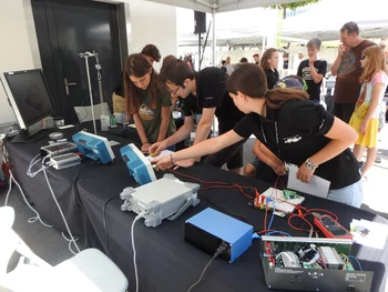 Am Sonntag, 25. Juni begrüsste die Berufsbildung erneut viele interessierte Besucherinnen und Besucher am jährlich durchgeführten Anlass "Lehrberufe à la Carte". An 15 Berufsständen konnten Lernende und Berufsbildner interviewt werden. Am Stand vom ask! und der Leitung Berufsbildung wurden ebenfalls viele Fragen von Jung und Alt beantwortet. Auch das iLab und PSI Forum konnten interessierten Besuchern die Exponate oder die Vakuumexperimente zeigen. Gut besuchte Präsentationen und Referate boten das ask!, Mario Liechti Vizeweltmeister als Elektroniker EFZ und die Leitung Berufsbildung an. Als berufsübergreifendes Projekt wurde der "Magnetizer" bestaunt und in Betrieb genommen. Wer den Überblick behalten wollte, erhielt diesen bei einer "Fahrt" in luftige Höhe mit dem Hubretter der Feuerwehr.