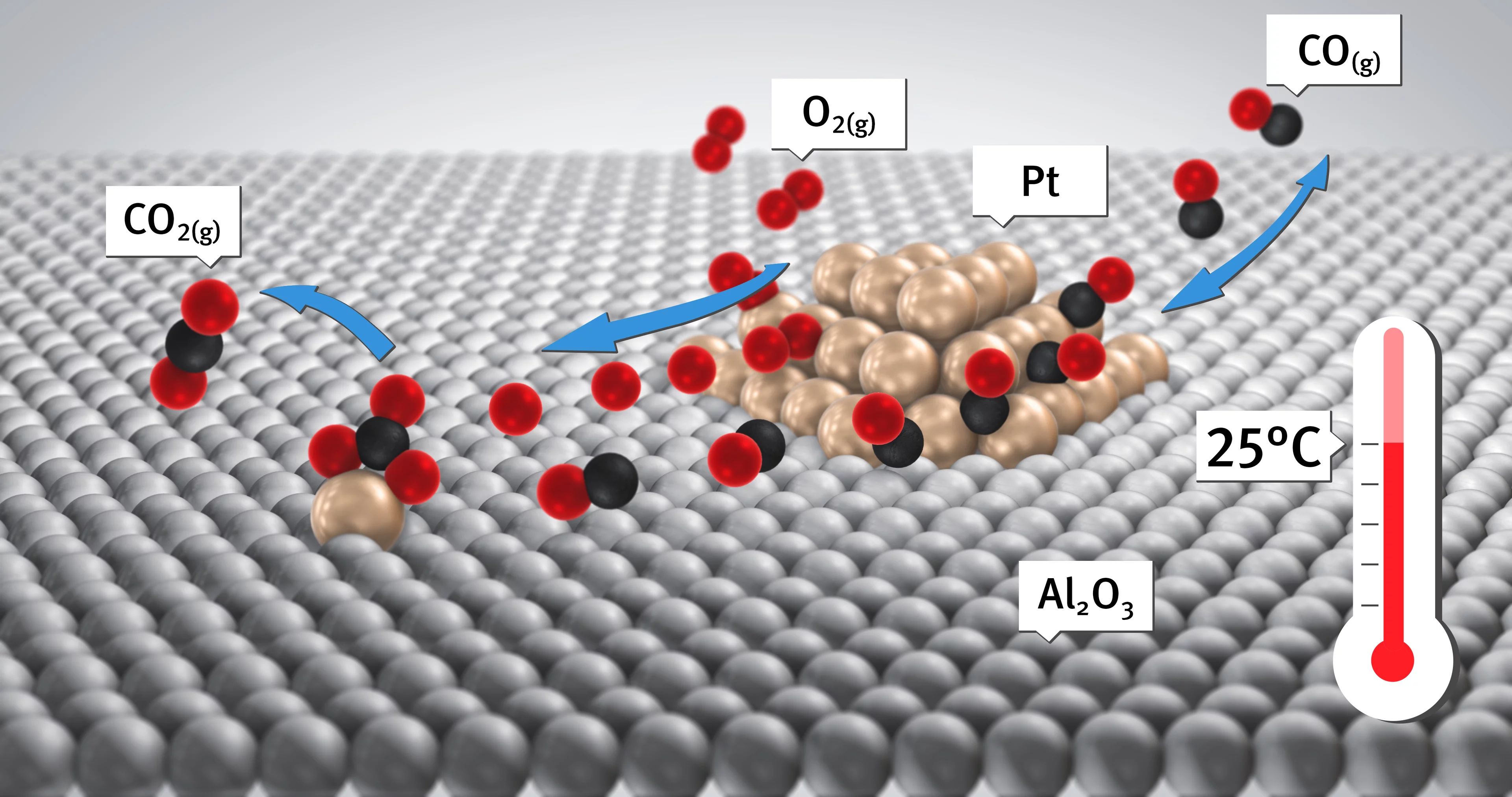 Room-temperature carbon monoxide oxidation, important for maintaining clean air among other applications, is challenging even after a century of research into carbon monoxide oxidation. Here we report using time-resolved diffuse reflectance infrared spectroscopy, X-ray absorption fine structure spectroscopy and mass spectrometry a platinum carbonate-mediated mechanism for the room-temperature oxidation of carbon monoxide. By applying a periodic reduction–oxidation mode of operation we further show that this behaviour is reversible and can be formed into a catalytic cycle that requires molecular communication between metallic platinum nanoparticles and highly dispersed oxidic platinum centres. A new possibility for the attainment of low-temperature oxidation of carbon monoxide is therefore demonstrated.