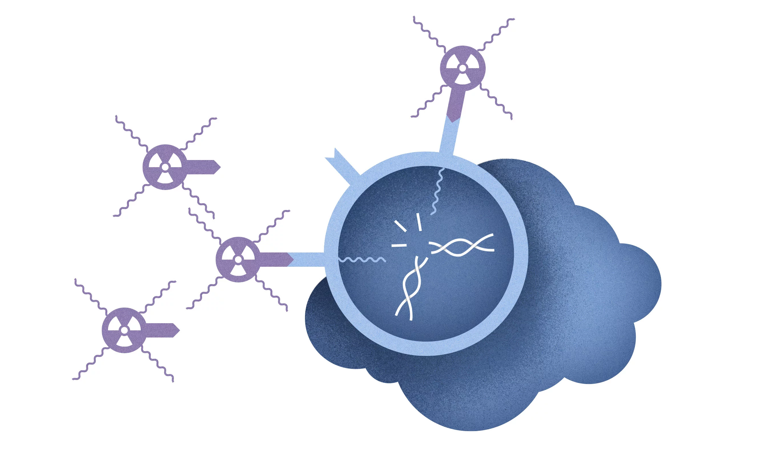 Einmal im Blutkreislauf angekommen, sucht sich das radioaktive Arzneimittel sein Ziel im Körper: die Krebszellen. Diese tragen auf ihrer Oberfläche Strukturen, die charakteristisch für eine Krebsart sind, und die gesunde Zellen nicht aufweisen. An diese Strukturen dockt das Arzneimittel an, das an das Radionuklid gekoppelt ist.