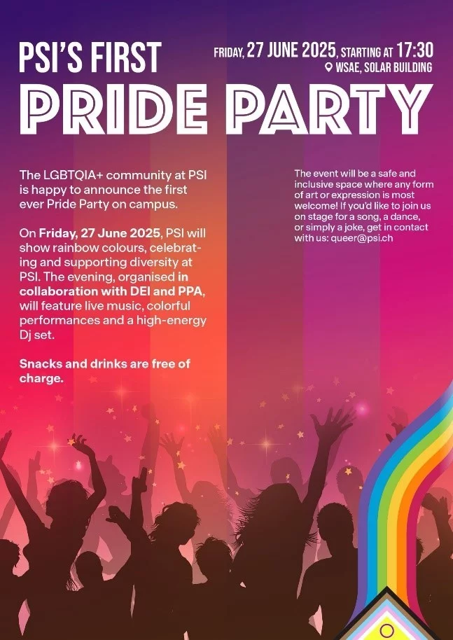 PSI has a Diversity, Equity and Inclusion Committee (DEICO), at which PPA has a representative to represent all PhDs and Postdocs. Our committee aims to foster diversity and equity based on gender, origin, disabilities, health, family... The committee is involved on programs for women in science, a family flexibility grant, rules on home office, etc. We have also been working on making PSI a more inclusive workplace, through a Respect campaign, the availability of hygiene products in women’s toilets, as well as the evaluation of the needs of the employees in the new Park Innovaare building. Finally, for the past 2 years, PPA has organized a cultural diversity party in May, to celebrate all nationalities and cultures at PSI. It was financially supported by DEICO (and thus by PSI) in 2024, whereas in 2025 DEICO funded a Gay Pride event at PSI, co-organized by the LGBTQIA+ community and PPA.
