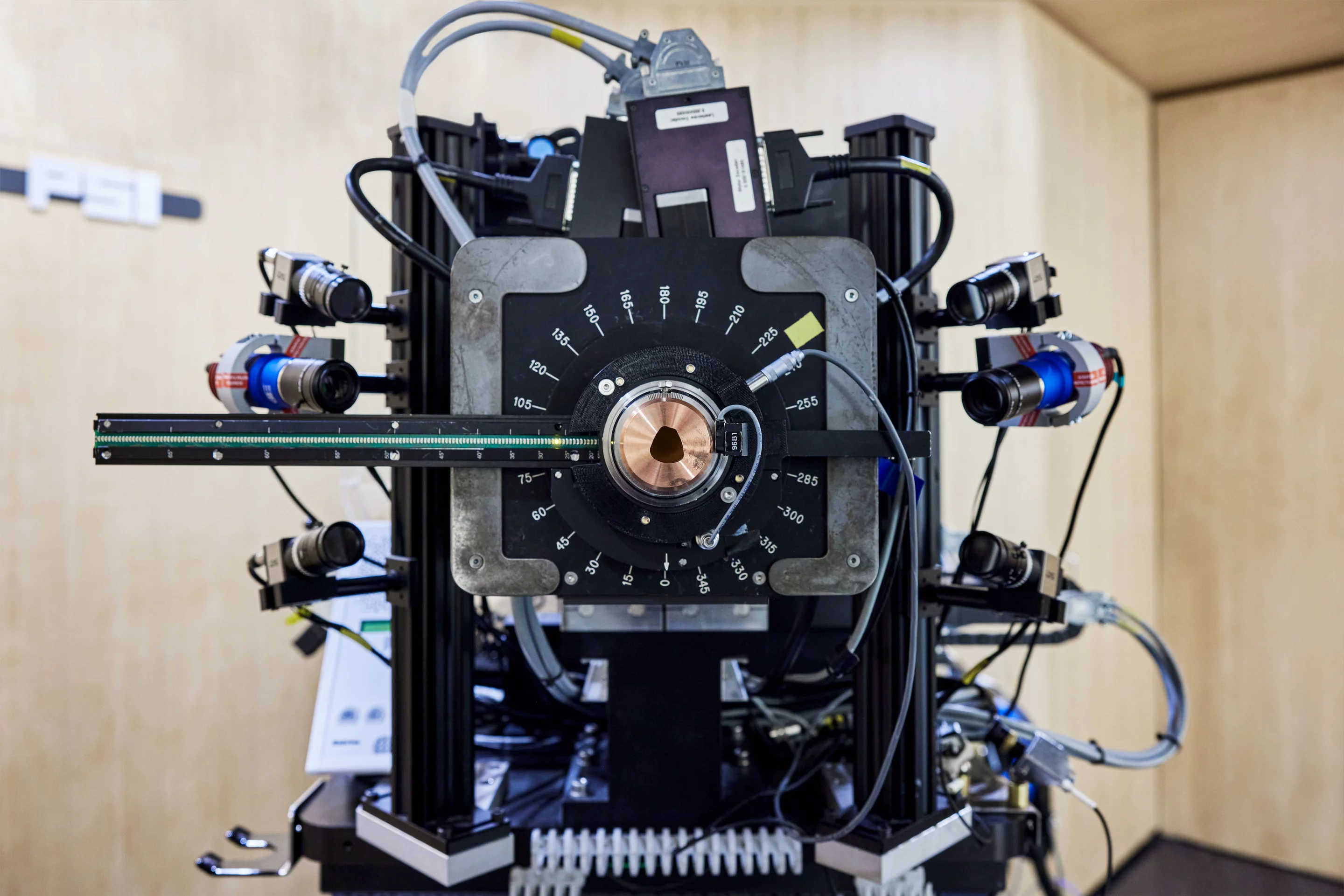 Wenn man als Patient zum ersten Mal den Behandlungsraum OPTIS betritt muss man sich auf Vieles konzentrieren und nimmt die glänzende Kupferscheibe vielleicht gar nicht war. Dabei spielt sie eine zentrale Rolle bei der Bestrahlung des Auges: Durch das unregelmässig geformte Loch in der Mitte tritt der Protonenstrahl aus, der auf den Tumor des Auges einwirkt.