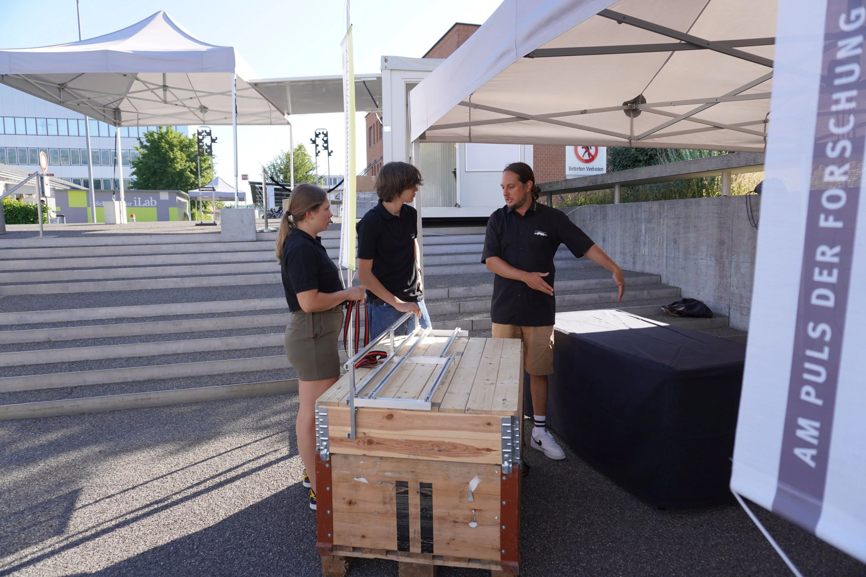 Am Sonntag, 25. Juni begrüsste die Berufsbildung erneut viele interessierte Besucherinnen und Besucher am jährlich durchgeführten Anlass "Lehrberufe à la Carte". An 15 Berufsständen konnten Lernende und Berufsbildner interviewt werden. Am Stand vom ask! und der Leitung Berufsbildung wurden ebenfalls viele Fragen von Jung und Alt beantwortet. Auch das iLab und PSI Forum konnten interessierten Besuchern die Exponate oder die Vakuumexperimente zeigen. Gut besuchte Präsentationen und Referate boten das ask!, Mario Liechti Vizeweltmeister als Elektroniker EFZ und die Leitung Berufsbildung an. Als berufsübergreifendes Projekt wurde der "Magnetizer" bestaunt und in Betrieb genommen. Wer den Überblick behalten wollte, erhielt diesen bei einer "Fahrt" in luftige Höhe mit dem Hubretter der Feuerwehr.
