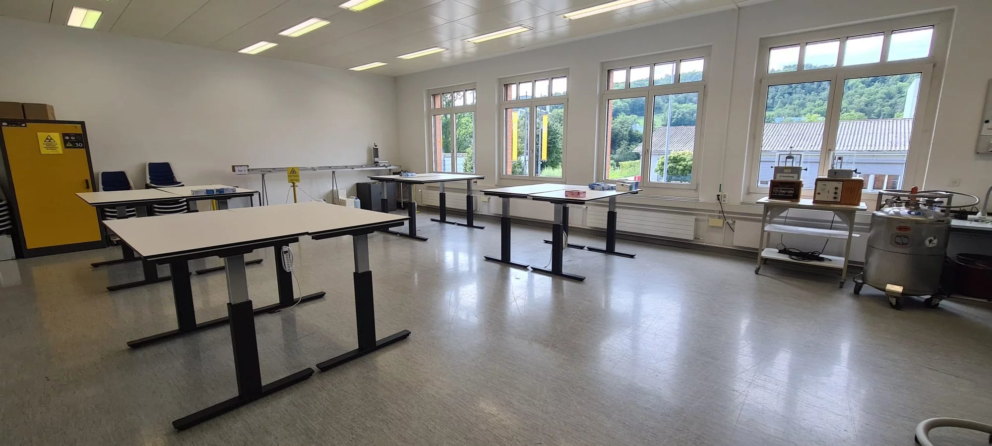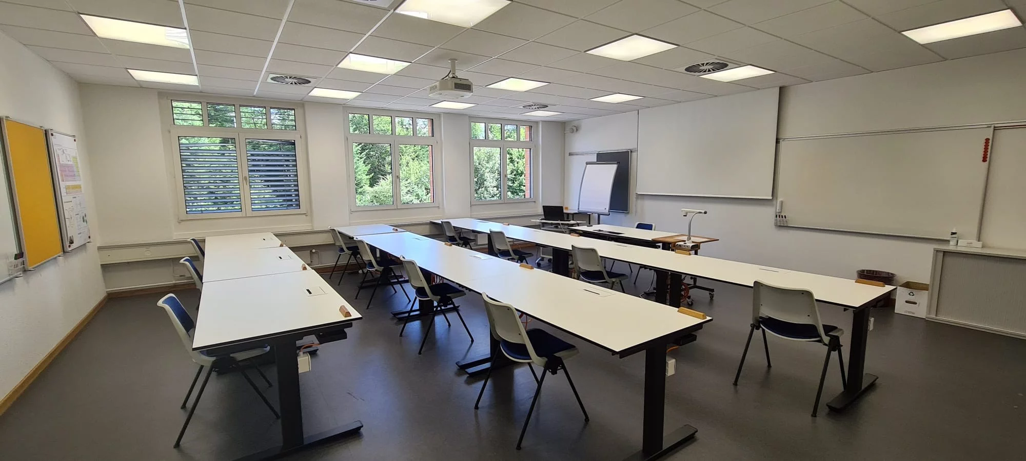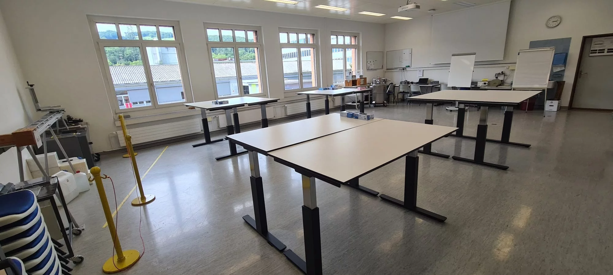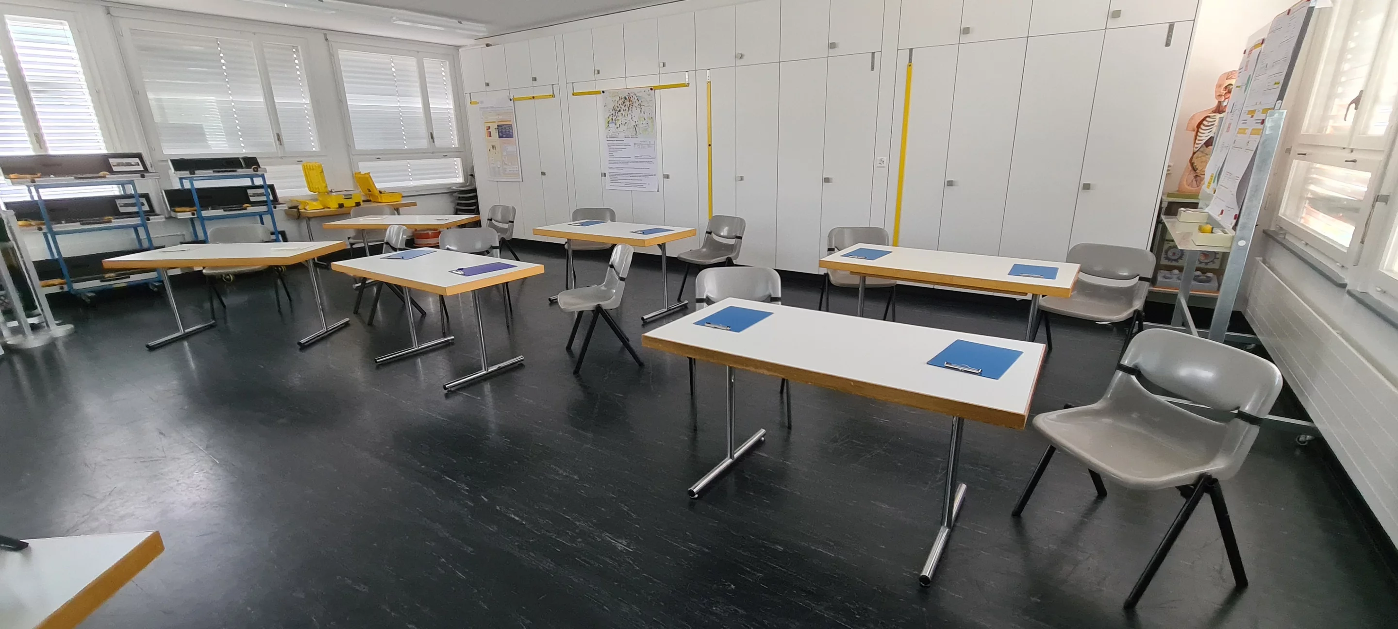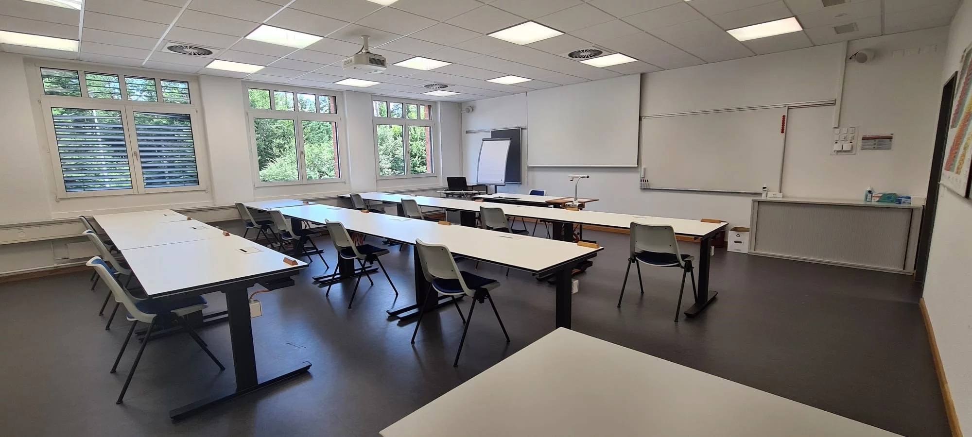 Our modern training building has 6 contemporarily equipped classrooms, 2 smaller group rooms and meeting rooms, 1 large lecture hall, 1 X-ray laboratory including red light development laboratory, 1 physics laboratory and 1 chemistry laboratory. In addition, the "Spürgarten" training facility is located on the PSI premises within walking distance.