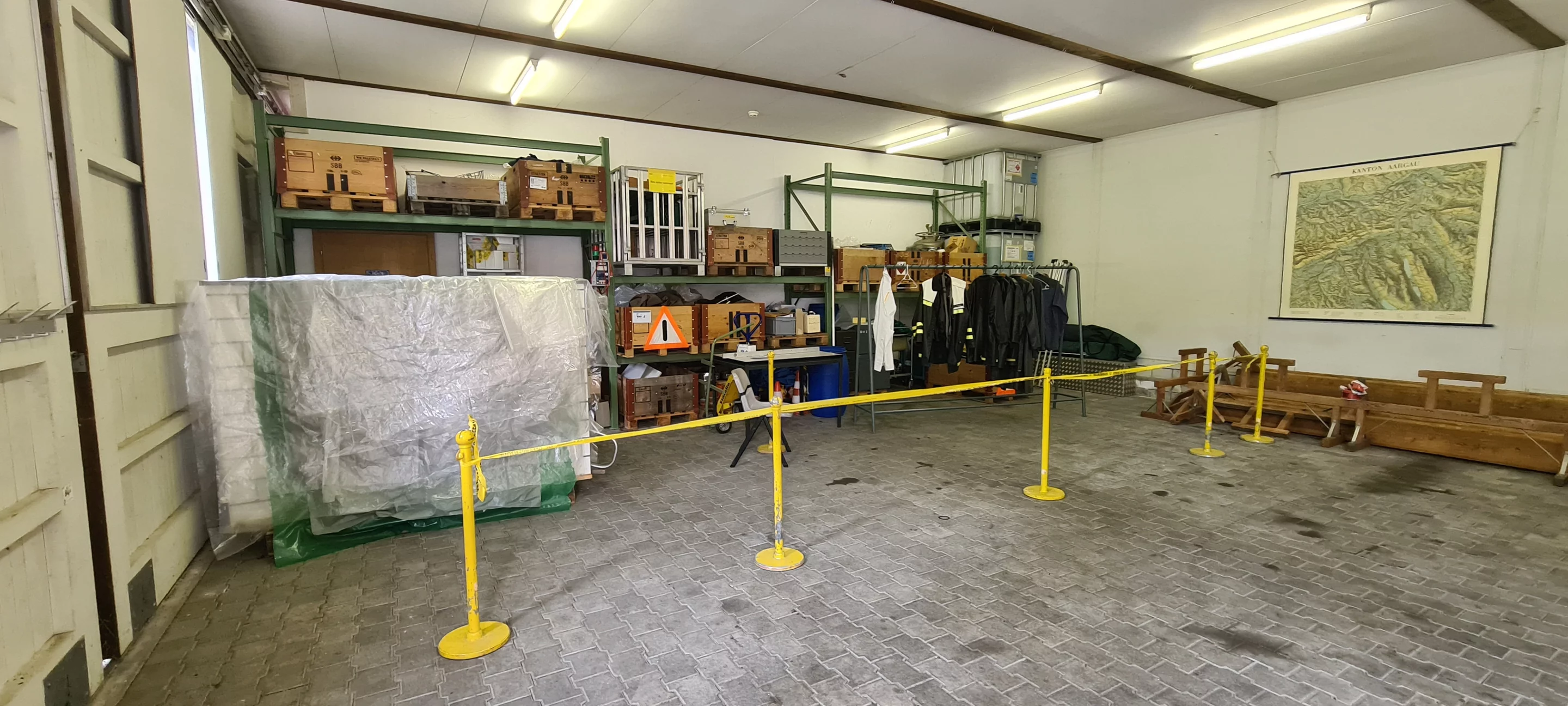 Realistic outdoor or indoor situations can be simulated in the "Spürgarten" training facility. This allows first responders to train road accidents or radiological incidents. A course room with laptop, beamer, and space for 16 participants is available.