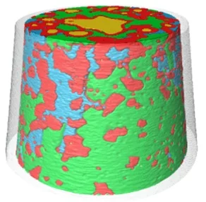 Calcium silicate hydrates (C-S-H) are the most abundant hydration products in ordinary Portland cement paste. Yet, despite the critical role they play in determining mechanical and transport properties, there is still a debate about their density and exact composition. Here, the site-specific mass density and composition of C-S-H in hydrated cement paste are determined with nanoscale resolution in a nondestructive approach. We used ptychographic X-ray computed tomography in order to determine spatially resolved mass density and water content of the C−S−H within the microstructure of the cement paste. Our findings indicate that the C-S-H at the border of hydrated alite particles possibly have a higher density than the apparent inner-product C-S-H, which is contrary to the common expectations from previous works on hydrated cement paste.