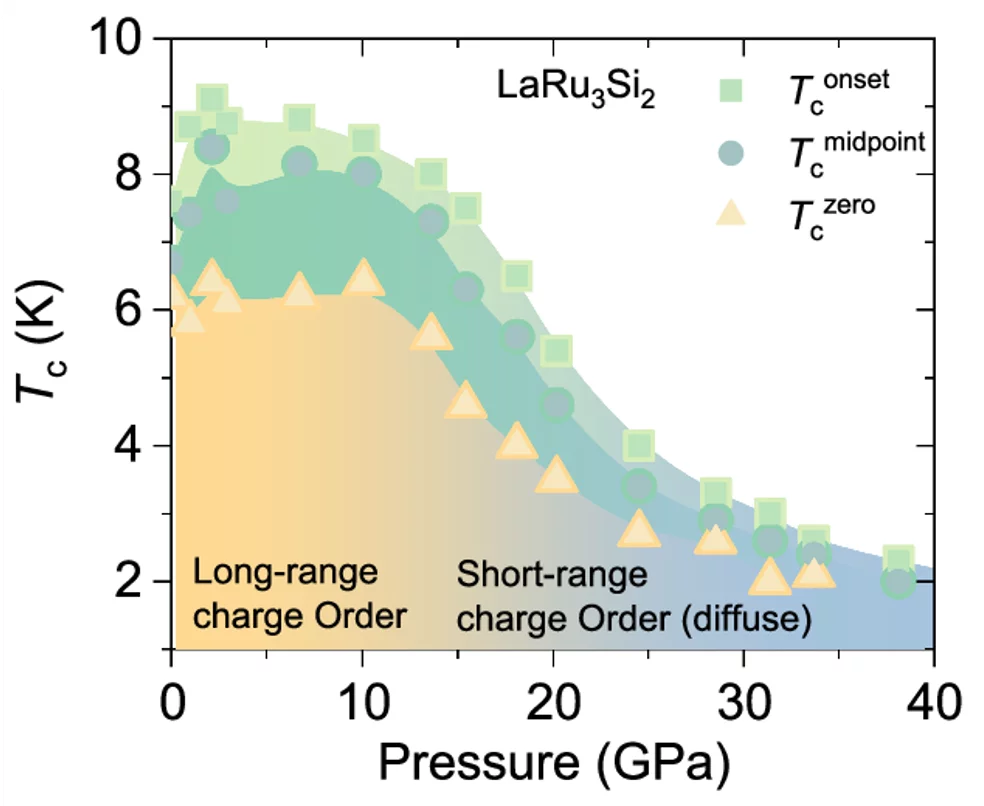 The calculations reveal that electronic correlations are relevant in this material, helping to stabilize these intertwined phases. By applying high pressure, the authors were able to tune these phases and map out how they evolve. Most notably, LaRu3Si2 displays a dome-shaped superconducting phase diagram, with the superconducting transition temperature (Tc) peaking at 9 K—the highest Tc reported among kagome superconductors to date.