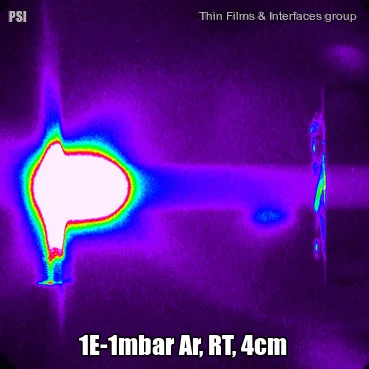 The influence of different background gases and substrate heating on the plasma plume dynamics from silver ablation is investigated by species selected time and space resolved imaging. The results provide a time-resolved understanding on how those process parameters affect the expansion: from a free expansion in vacuum with velocities exceeding 20'000 m/s to a very slow expansion in Ar at 1 × 10−1 mbar with arrival velocities of 280 m/s. In addition, we observe a rebound of the ablated material on the substrate holder leading to a re-coating of the ablated target. At 1 × 10−1 mbar, it seems that the expansion of the plasma plume displaces a considerable portion of the background gas and traps it against the frontal area of the substrate holder. This leads to a transient high local pressure just above the substrate. In the case of Ar, the rebound is enhanced due to inelastic scattering, whereas for an O2 background, an area of high reactivity/emission in addition to the rebound is created. Imaging of selected species shows that the light emission in this area is mainly due to excited Ag and metal oxygen species. There is a clear influence of substrate heating on the plasma expansion due to the background gas density gradients, reducing the stopping ability of the background gas and already detectable 2 cm away from the substrate. Both rebound and excitation effects are reduced in intensity due to the substrate heating.