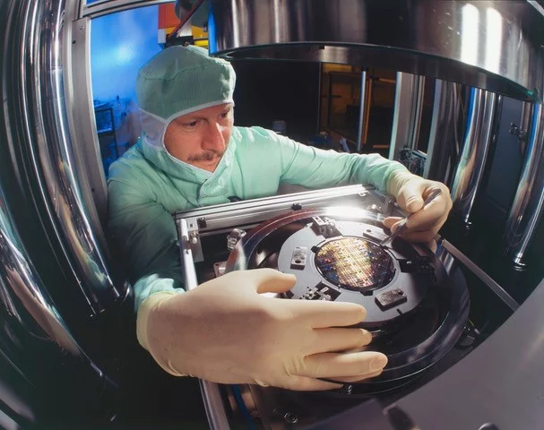 The „processing lab" is a semi-cleanroom of ca. 150 m2 with laminar flow boxes in the critical areas and a class 10’000 environment elsewhere.
