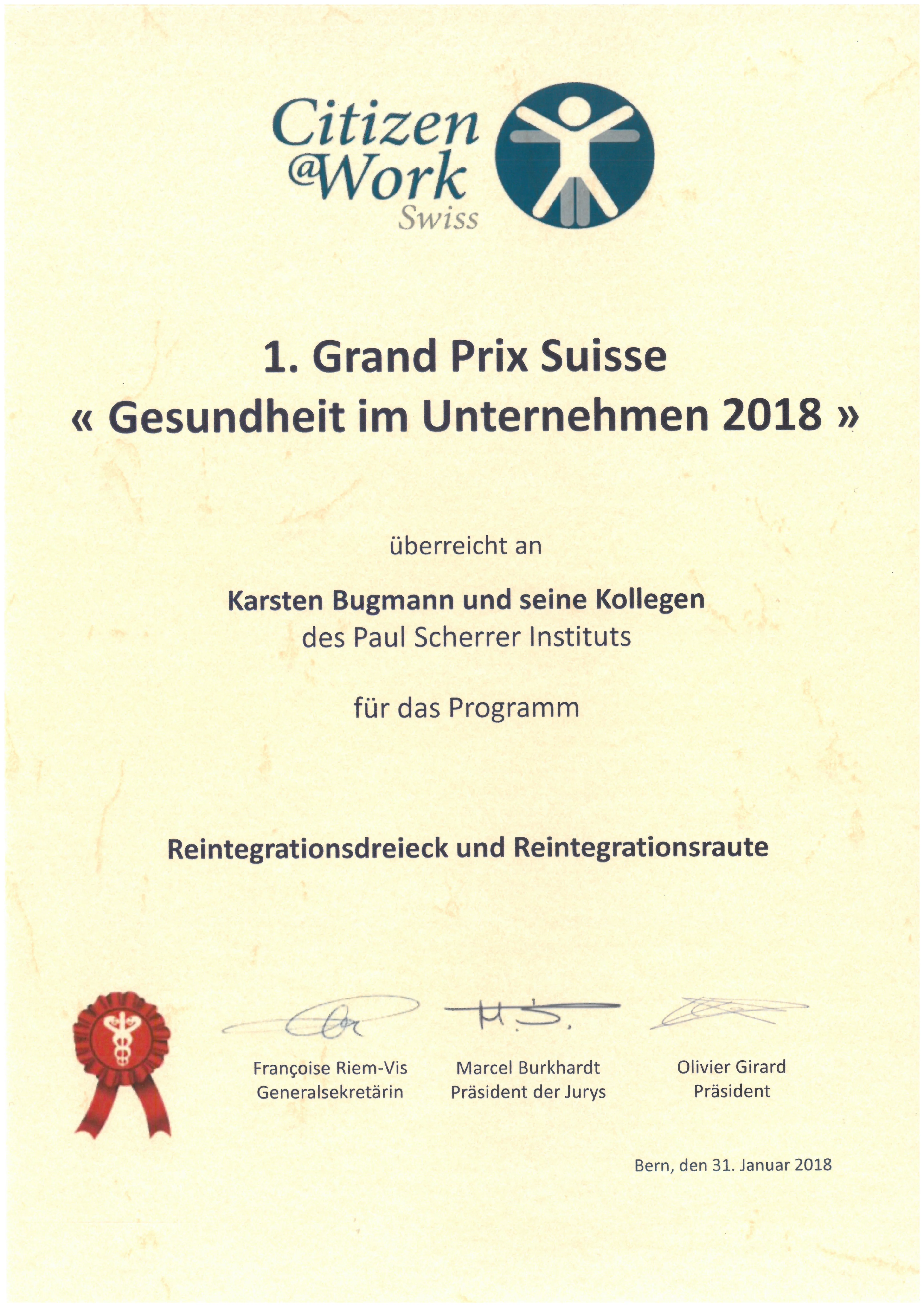 Grand Prix Suisse «Health in the enterprise» 2018