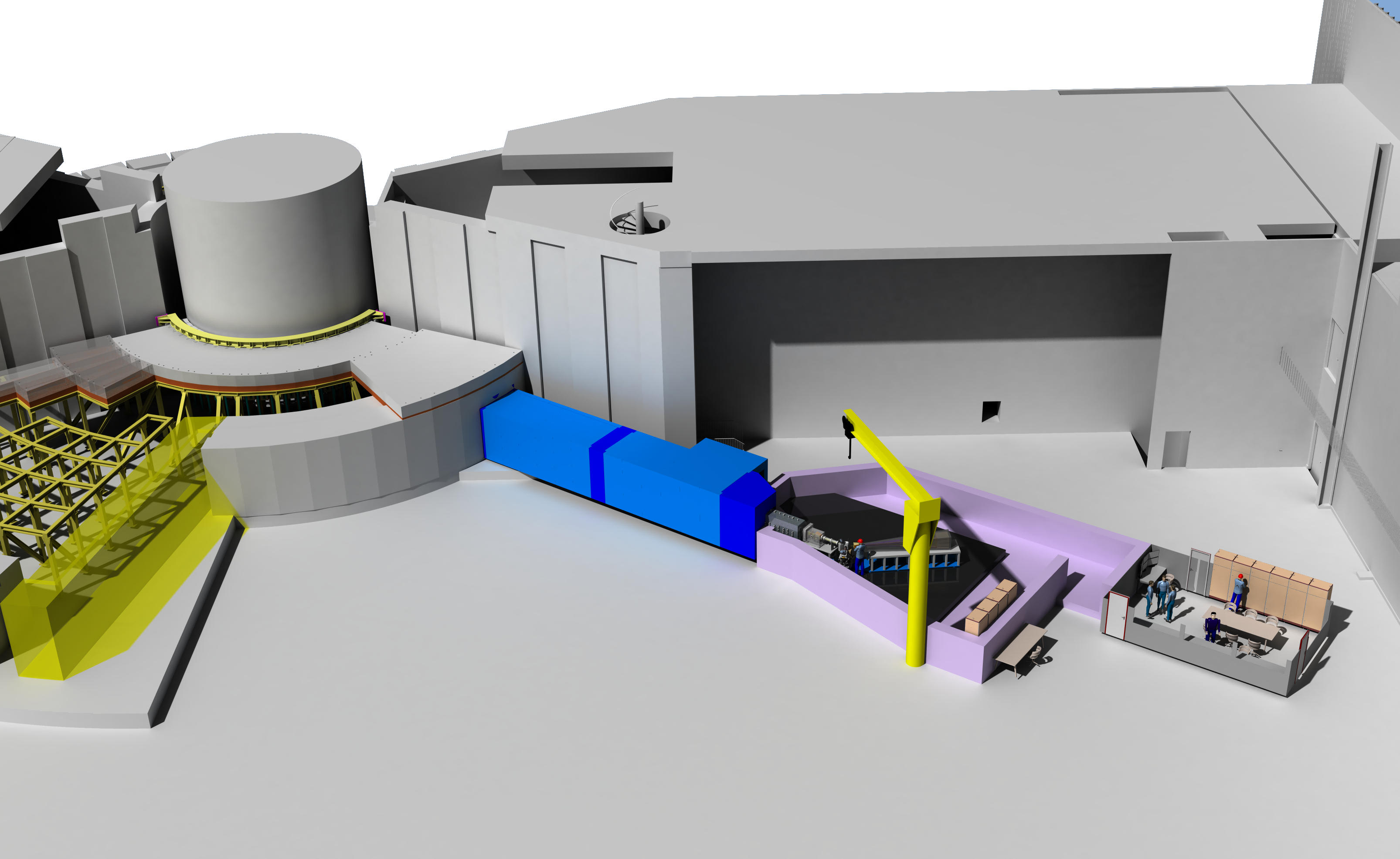 The image below shows an overview of the Estia instrument within the ESS experimental hall: