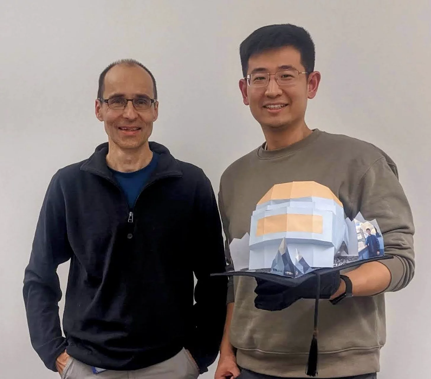 After his graduation at Illinois Wesleyan University, and master thesis at Georgia Institute of Technology, Dr. Boyang Zhou joined the Soft Matter group at LNS in March 2020, working on his PhD thesis titled “Effect of Softness and Charges on the Volume Phase Transition of Colloidal Microgels and Macrogels”. His thesis was successfully defended on January 11th 2024, at ETHZ. The external committee has joined the supervisors, Urs Gasser (PSI), Alberto Fernandez-Nieves (U. Barcelona) and Lucio Isa (ETHZ), to approve Boyang’s work. Microgels and macrogels are of great interest in both applications and fundamental research, due to their stimuli-sensitive nature and tunability. However, their softness increases the number of degrees of freedom compared to hard colloidal particles and gives rise to a more complex behavior. So far, there was no generally accepted model to describe microgel interactions, especially for concentrated microgel suspensions. In his thesis, Dr. Zhou studied the effect of counterions on the microgel periphery resulting from the use of ionic initiators in the synthesis. He confirms that counterion clouds are present and can delocalize and control the swelling of the microgel. Such results not only contribute valuable insights for developing a model to describe microgel interactions but also showcase the capability of small-angle neutron scattering (SANS) in studying soft matter. The LNS congratulates Dr. Boyang Zhou for this achievement and wishes him the best for his upcoming bright career.