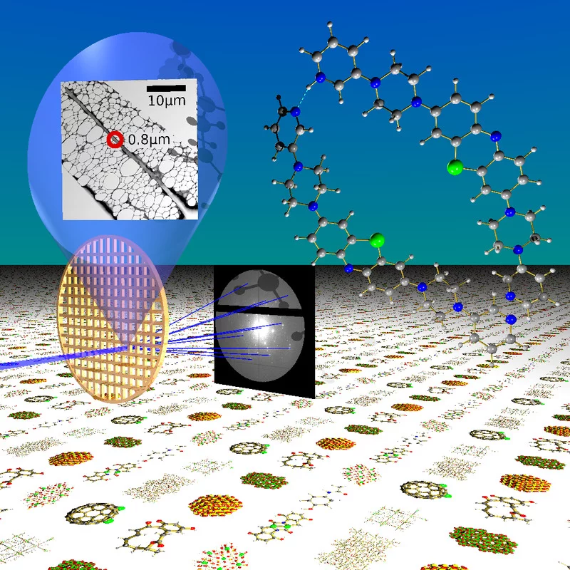 T. Gruene, J. Wennmacher and co-authors set up an electron diffractometer that works as efficiently as an X-ray diffractometer, the standard equipment in nearly every chemistry department - just that electron crystallography works on samples million times smaller than X-rays and therefore determines the single structure from crystals smaller than the a single grain of icing suger. The authors present the complex structure of a methylene blue derivative, and the determined the single crystals structure of an API directly from a powder blend. The zeolite ZSM-5 was essential for the "crystallographic calibration", which was key to the efficiency of the instrument.
