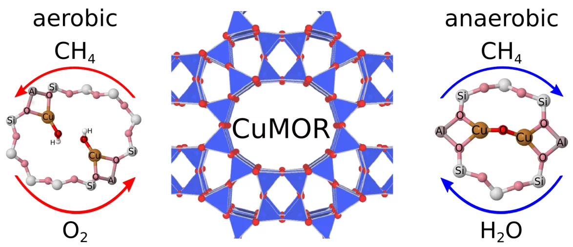 Materials with monomeric and oligomeric copper sites that are active in the direct conversion of methane into methanol possess different reactivity towards methane and water. In our ESRF Highlight, we have shown for the first time that oligomeric copper species exhibit high activity under both aerobic and anaerobic activation conditions, whereas monomeric copper sites produce methanol only in aerobic processes.