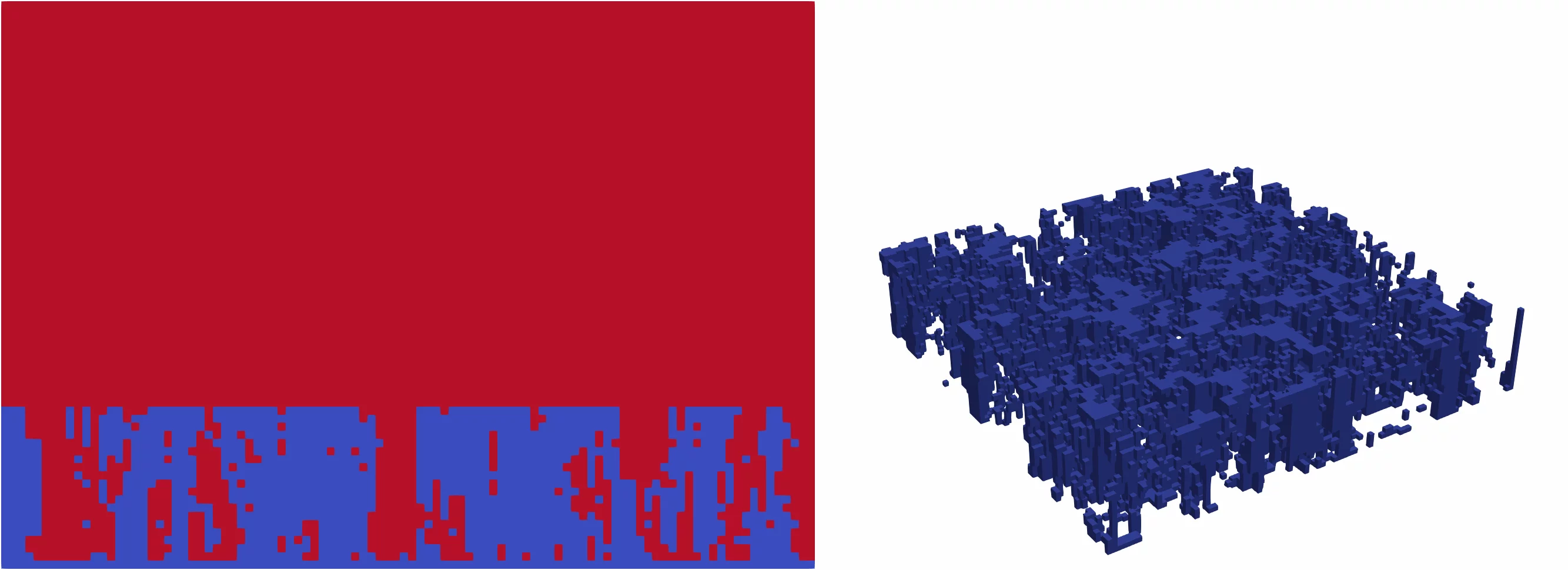The visualisation of Mokos’s simulations shows how bubbles form in porous deposits on the fuel rods of a nuclear reactor. The coarse-grained graphics, somewhat reminiscent of the game Minecraft, are deceptive: Their resolution is just a few micrometres. © Paul Scherrer Institute PSI/Athanasios Mokos