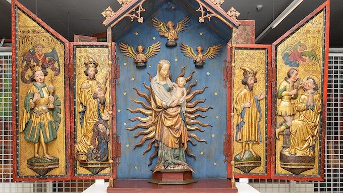 To gild sculptures in the late Middle Ages, artists often applied ultra-thin gold foil supported by a silver base layer. Scientists at PSI have now succeeded in producing for the first time nanoscale 3D images of this material, known as Zwischgold. The samples were unusual even for the highly experienced PSI team: minute amounts of material taken from three modern and four medieval samples, including an altar and wooden statues originating from the fifteenth century. Preforming ptychographic X-ray computed tomography (PXCT) at SLS, the team looked at the leaf structure and chemical state of the material. The measurements underline how highly sophisticated the mediaeval production technique for Zwischgold was, but also revealed increasing porosity of the leaf materials and their corrosion products, as well as delamination of the leaves from their substrate — issues typically observed in the conservation of such artefacts.