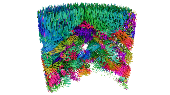 Zoom in to the micro- or nanostructure of functional materials, both natural and synthetic, and you’ll find they consist of thousands upon thousands of coherent domains or grains — distinct regions where molecules and atoms are arranged in a repeating pattern. Such local ordering is inextricably linked to the material properties. These domains are often only tens of nanometres in size, and it is their arrangement in three dimensions over extended volumes that determines the properties of the material. Yet until now, techniques to probe the organisation of materials at the nanoscale have largely been limited to two dimensions or are destructive in nature. Now, using X-rays generated by SLS, a collaborative team of researchers from PSI, ETH Zurich, the University of Oxford and the Max Plank Institute for Chemical Physics of Solids has developed an imaging technique to access this information: X-ray linear dichroic orientation tomography (XL-DOT) is a novel quantitative, non-invasive technique that enables an intragranular and intergranular characterization of extended polycrystalline and non-crystalline materials in three dimensions.