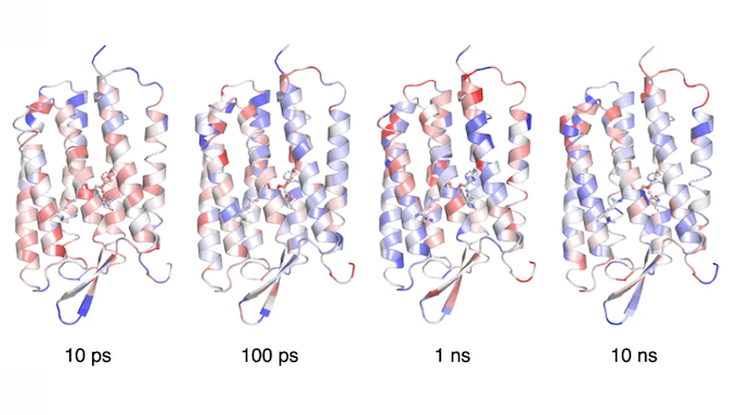 Time-resolved serial crystallography (TR-SFX) at X-ray free-electron lasers enables the observation of ultrafast photochemical reactions at the atomic level. The technique has provided exciting molecular insights into various biological processes, including light sensing and photochemical energy conversion. However, to achieve sufficient levels of activation within an optically dense crystal, high laser power densities are often used, which has led to an ongoing debate about the extent to which photodamage might compromise interpretation of the results. An international team led by PSI researchers has now compared TR-SFX data collected at laser power densities ranging from 0.04 to 2493 GW/cm2 for an early photocycle intermediate of the bacteriorhodopsin light-driven proton pump. Although the effects of high laser power densities on the overall structure were found to be small, in the upper excitation range they observed significant changes in retinal conformation and increased heating of the functionally critical counterion cluster — providing an example of how and when multiphoton absorption in the femtosecond domain can influence later structural intermediates and their biological interpretation.