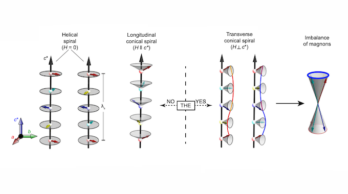 The topological Hall effect (THE) arises from non-coplanar magnetic structures with finite scalar spin chirality, which deflect conduction electrons through emergent magnetic fields. However, for magnetic structures with zero scalar spin chirality, the emergence of a finite topological Hall signal presents a conceptual challenge. Now, an international team of researchers reports that the itinerant helimagnet Fe3Ga4 exhibits a substantial THE at and above room temperature through a fluctuation-driven mechanism. Using neutron scattering experiments at SINQ, ILL and ISIS, they identified a helical spiral phase that transforms into a transverse conical state under applied magnetic field. Despite this conical state having zero scalar spin chirality by symmetry, directional breaking of time-reversal symmetry leads to an unbalanced population of chiral magnons, generating dynamic scalar spin chirality. The resulting THE magnitude is comparable to materials hosting skyrmion lattices, but in a simpler magnetic structure at higher temperatures. These findings establish an alternative route for generating topological transport phenomena in itinerant magnets, significantly expanding the materials landscape for room-temperature spintronic applications.