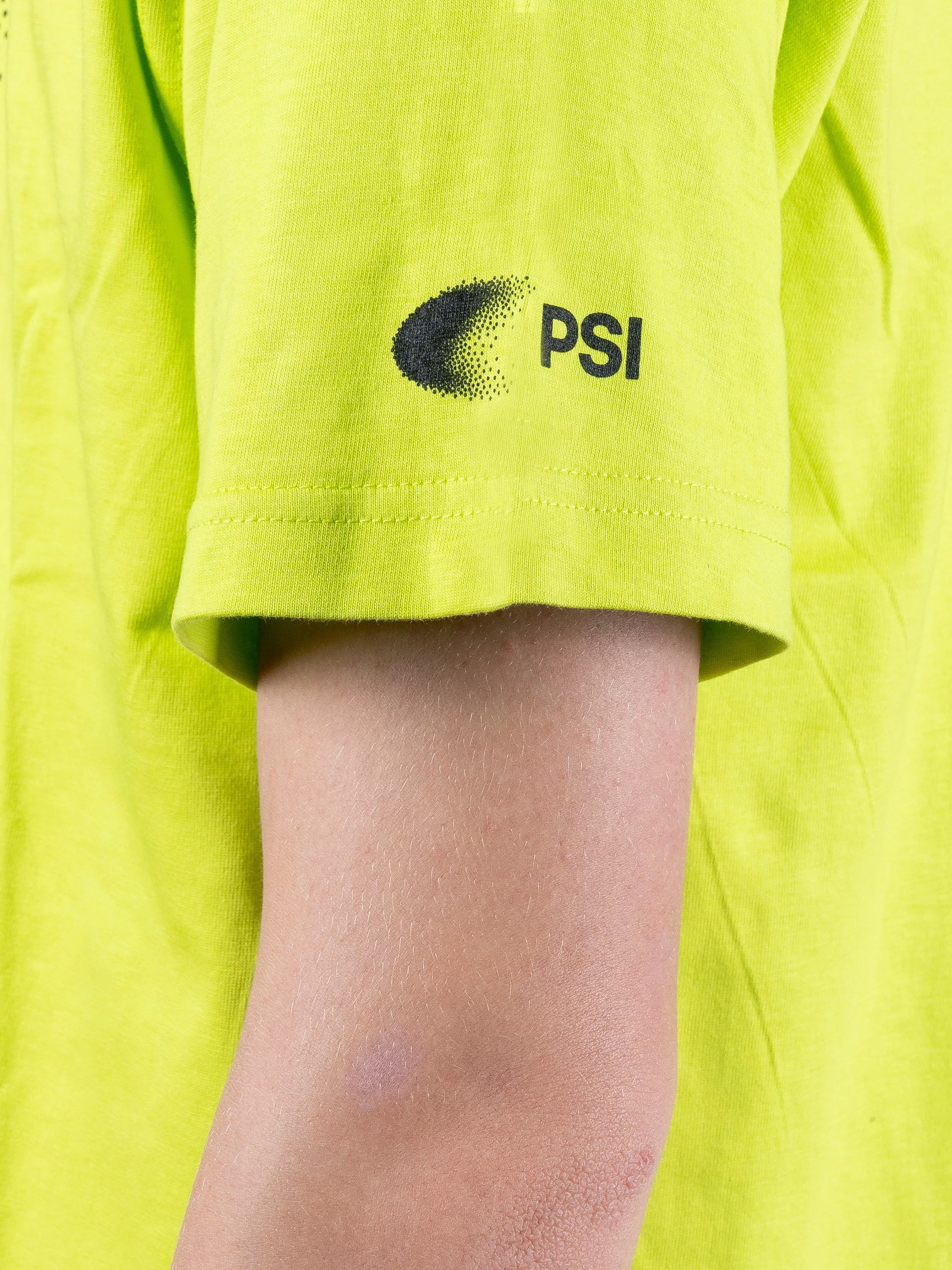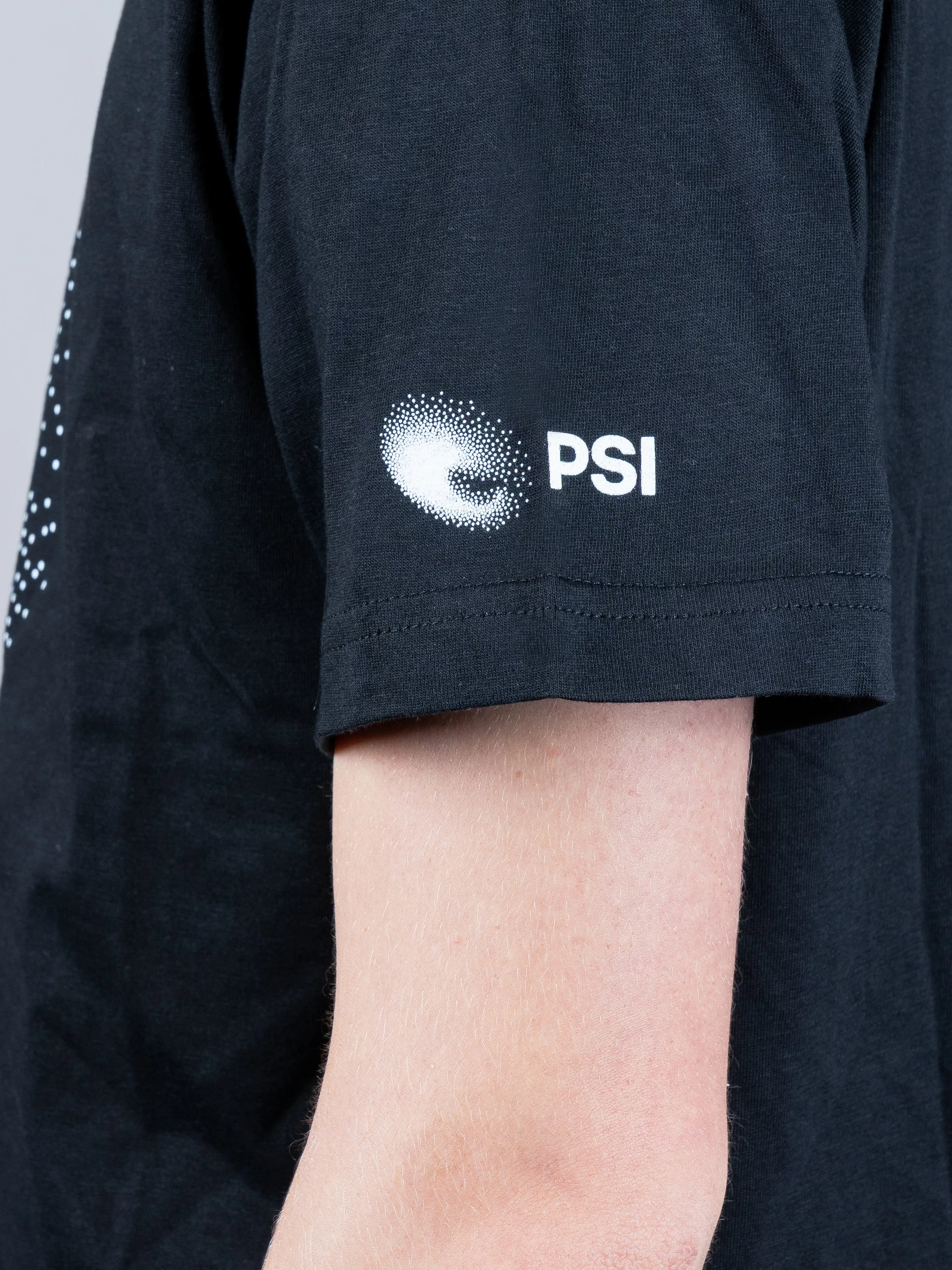 Durable, classic short-sleeve unisex T-shirt with a round neckline. Material 100% cotton. The PSI-logo is printed on the sleeve, upper back, and a cloud on the front. Washable at 40°.