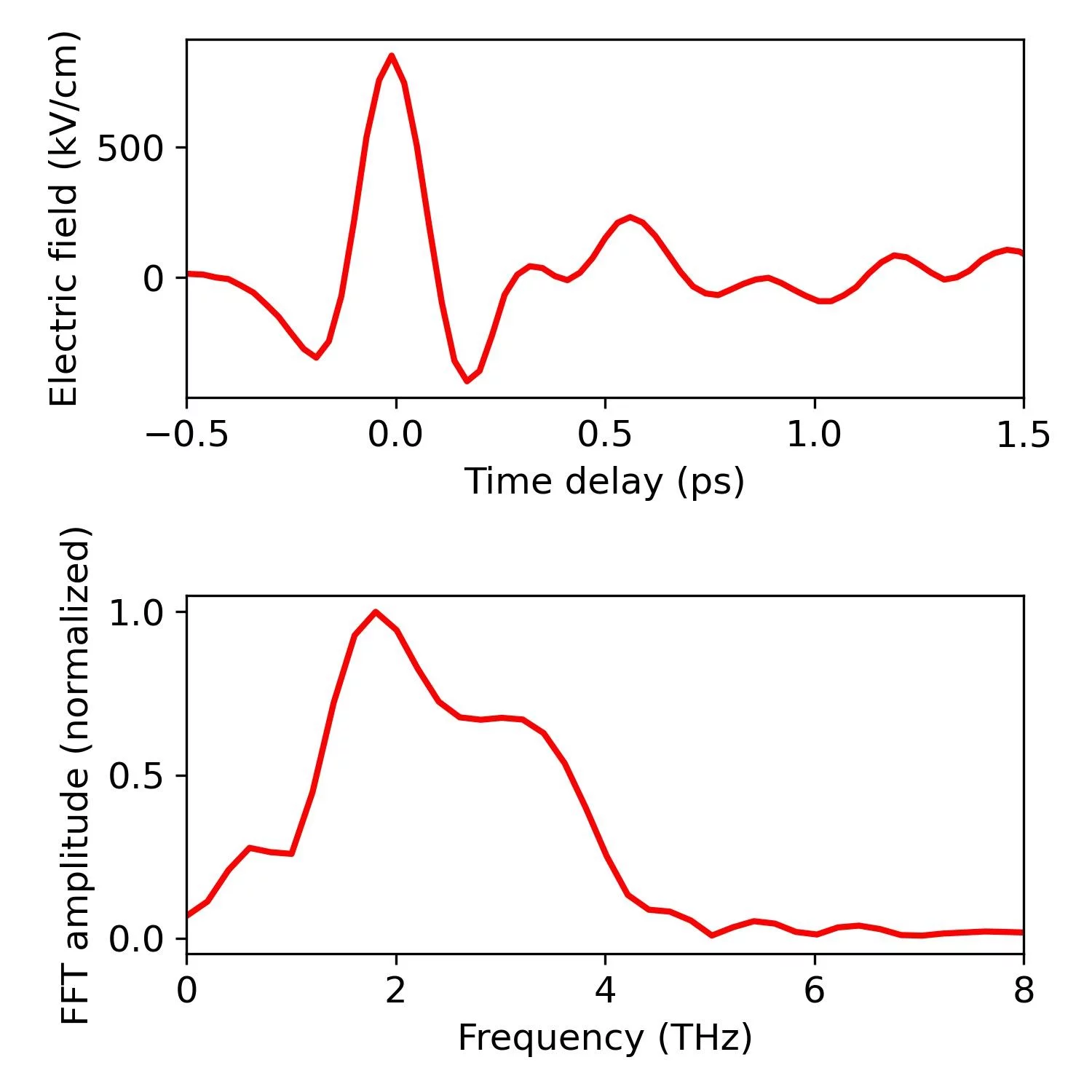 The investigated material, Tb2Ti2O7, is a magnetically frustrated Pyrochlore with no long range magnetic order down to the lowest temperature. Characteristic for this rare earth Titanate pyrochlore are degenerate ground states subjected to very low energy crystal field excitations of the Tb 4f states at 1.5meV (0.34THz), 10meV (2.4THz) and 16meV (3.8THz). The sample was cooled to 5KT to prevent thermal occupation of these very low energy states, and excited by single cycle broadband THz pulses with a frequency content of 0.3-4THz (1 - 16 meV) and a peak field of 0.9MV/cm.