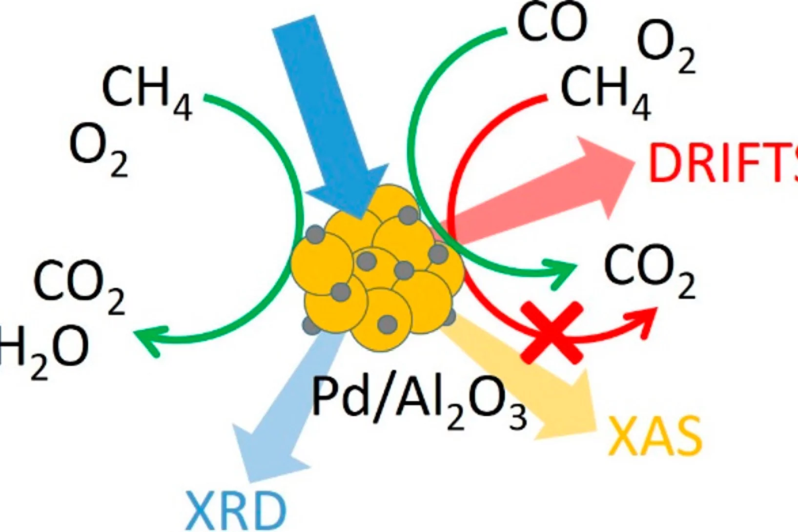Our multitechnique approach is based on the repetition of the very same experiment with a number of techniques, from lab scale benchtop to synchrotron based methods. We use IR, Raman and UV-vis spectroscopies as well as x-ray diffraction, x-ray absorption and emission spectroscopies to obtain complementary information on the material structure and the adsorbates under reaction conditions. This means that we seek to use the same setup and the same spectroscopy cell, where sample environment allows. Thus, we also develop spectroscopy and diffraction capabilities (cells, modulation experiments, time-resolved experiments, etc.).