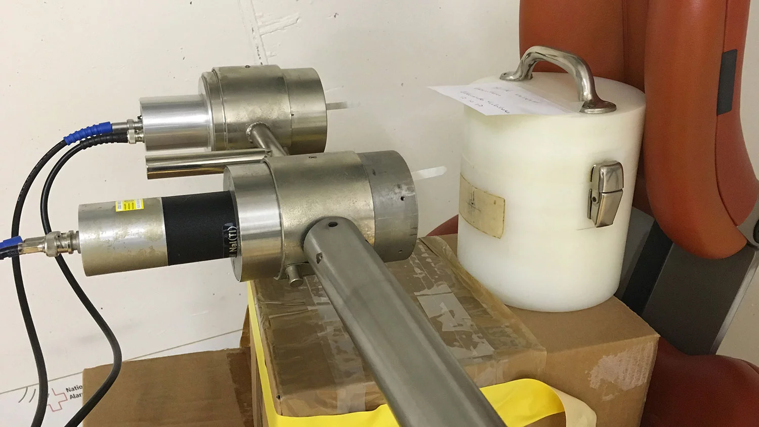 Two NaI:Tl detectors (Bicron 1XM.040/1.5B, 2.54 cm diameter, 1 mm thickness) and , Beryllium-window) and a NaI:Tl detector (Harshaw integral line 4S4/1.5G- X, 2.54 cm diameter, 2.54 cm thickness) are used for routine thyroid monitoring.