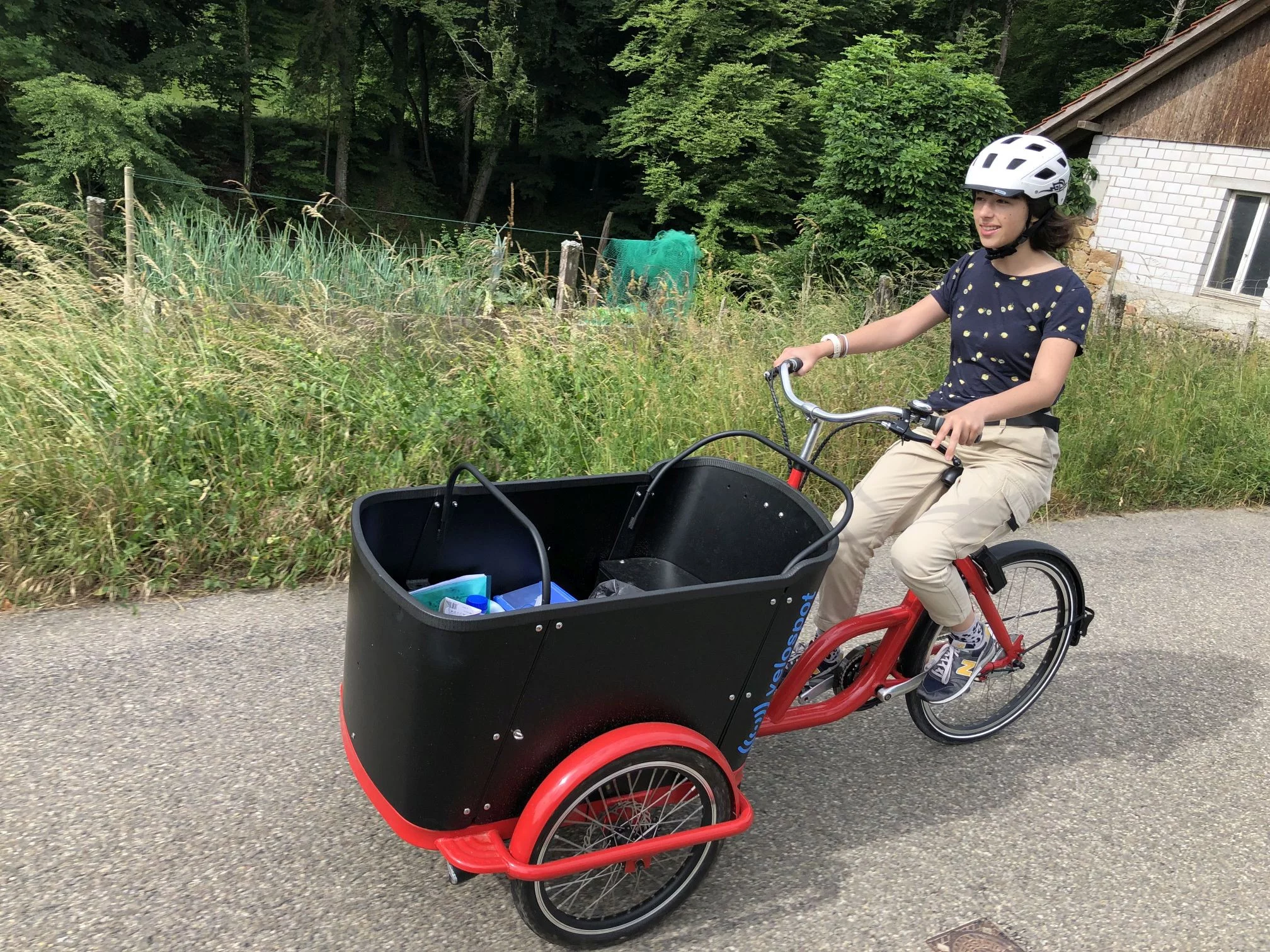Da die Kalkbildung abhängig von pH, Temperatur und der Wasserhärte ist, hat Paula alle diese Parameter gemessen und ausgewertet. Dazu hat sie Messungen vor Ort und im Labor durchgeführt, wofür die Proben und Messmaterial in einem Cargobike auf der Strecke vom Mühlebach in Böttstein bis zum Lehrlabor am PSI transportiert wurden.