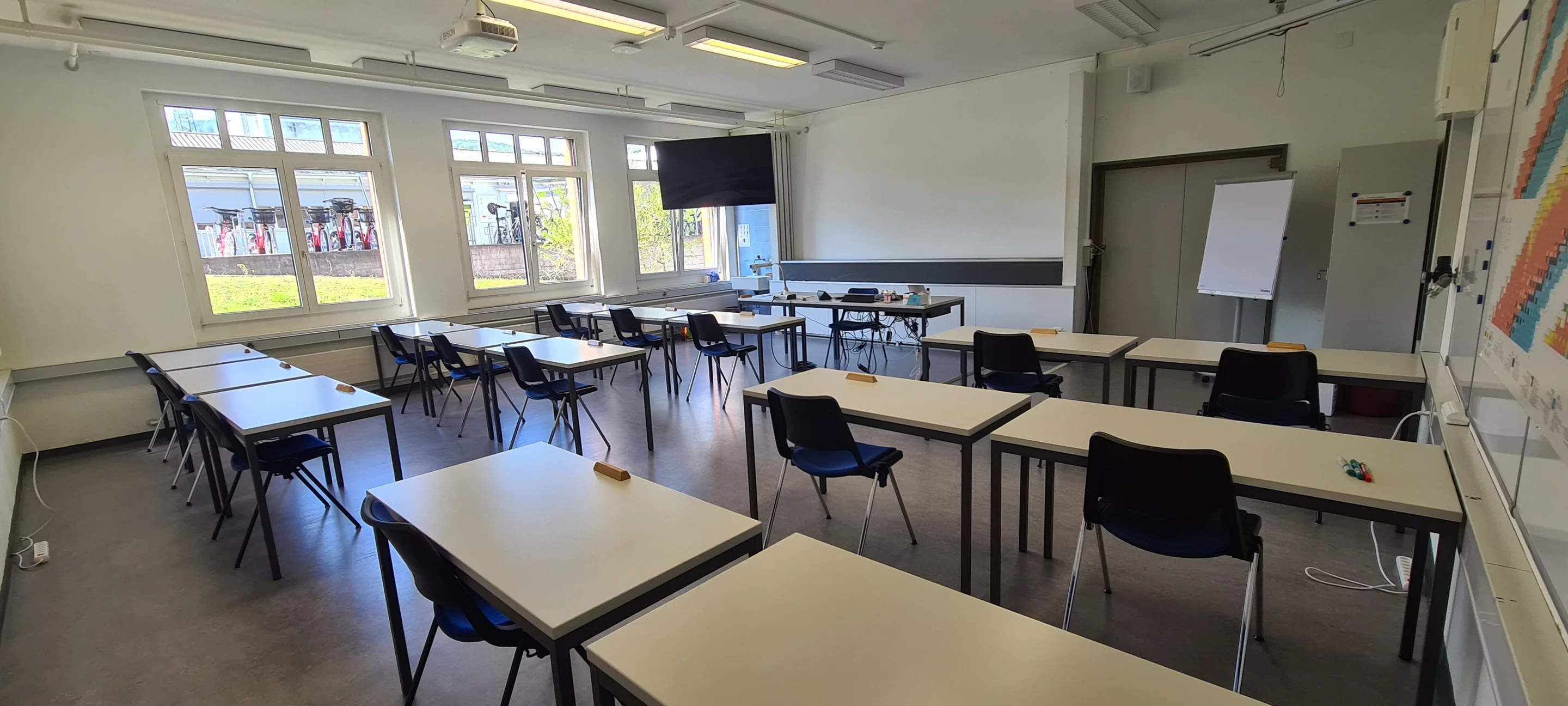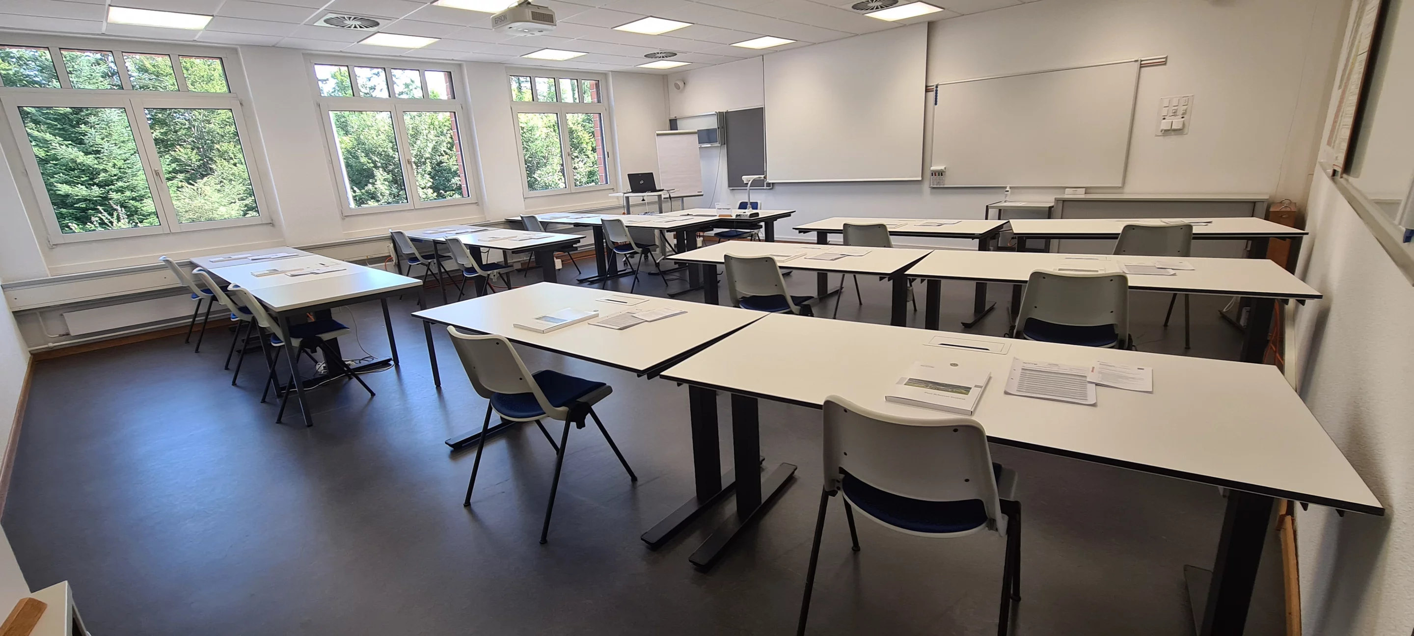 Unsere 6 modernen Schulzimmer können in Seminarbestuhlung von 16 bis 20 Personen genutzt werden. Für grössere Schulungen und Veranstaltungen befindet sich im EG ein Hörsaal mit Platz für 100 Personen in Theaterbestuhlung. Für sehr grosse Anlässe eignet sich das Auditorium auf dem Areal PSI West mit 300 Plätzen in fixer Hörsaalbestuhlung.