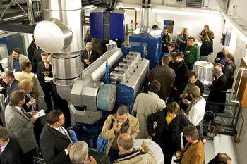 Um dieses Ziel zu erreichen, müssen neue Lösungsansätze erforscht und entwickelt werden. Dazu nimmt heute ein Prüfstand für Schiffsdieselmotoren am PSI seinen Betrieb auf. Da ein gängiger 2-Takt 12-Zylinder-Schiffsantriebsmotor viel zu gross für die notwendigen spezifischen Forschungsuntersuchungen ist, kommissionierte man die kleinste Motorengrösse, mit der eine relevante Forschung noch möglich ist: einen 4-Takt 1.2 Megawatt 6-Zylinder-Vollmotor. Für den Prüfstand musste eigens eine neue Halle gebaut werden, die dank eines zinslosen Darlehens durch den Kanton Aargau zügig realisiert werden konnte. Dazu meinte Regierungsrat Rainer Huber bei der Einweihungsfeier des Prüfstands: Der Kanton Aargau profitiert als Standortkanton von der weltweiten Ausstrahlung des Paul Scherrer Instituts und von seiner Wirkung als Innovationszentrum und als attraktiver Ausbildungsort und Arbeitgeber. Auf der anderen Seite schätzt das PSI ganz offensichtlich auch die Qualitäten des Standorts Aargau. Für diese partnerschaftliche Zusammenarbeit sind wir dankbar.