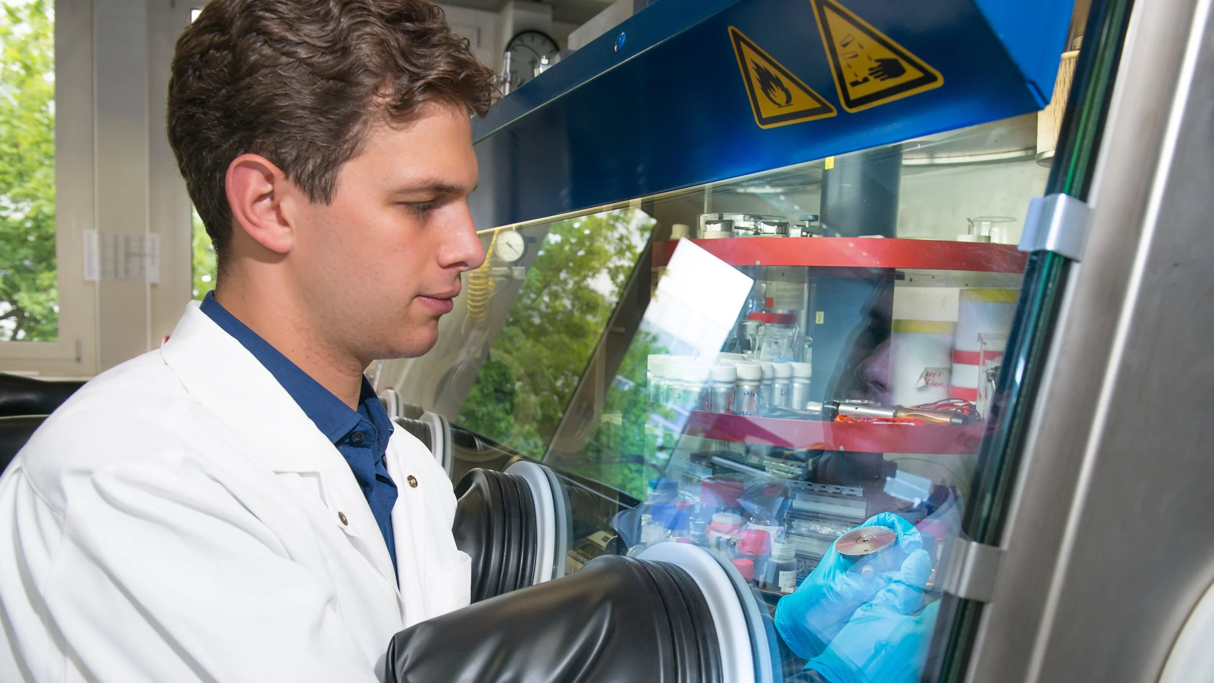 Patrick Lanz est donc resté fidèle à l’électrochimie. Au PSI, il a consacré son travail de master et sa thèse de doctorat, qu’il achèvera bientôt, à la recherche sur les accumulateurs. Il a analysé un nouveau matériau destiné aux électrodes des accumulateurs lithium-ion, censé rendre ces piles plus performantes et moins chères à la fabrication. « L’électrode positive des accumulateurs lithium-ion contient souvent du cobalt, détaille Patrick Lanz. Mais le cobalt est cher, et il est toxique pour l’environnement. De nombreux projets sont donc en cours pour trouver un remplaçant au cobalt comme matériau d’électrode. Des métaux comme le nickel et le manganèse figurent en bonne place parmi les candidats : liés au cobalt, ils peuvent même entraîner une augmentation des capacités de stockage par kilo. Cela réduirait simultanément les coûts et les soucis écologiques. »