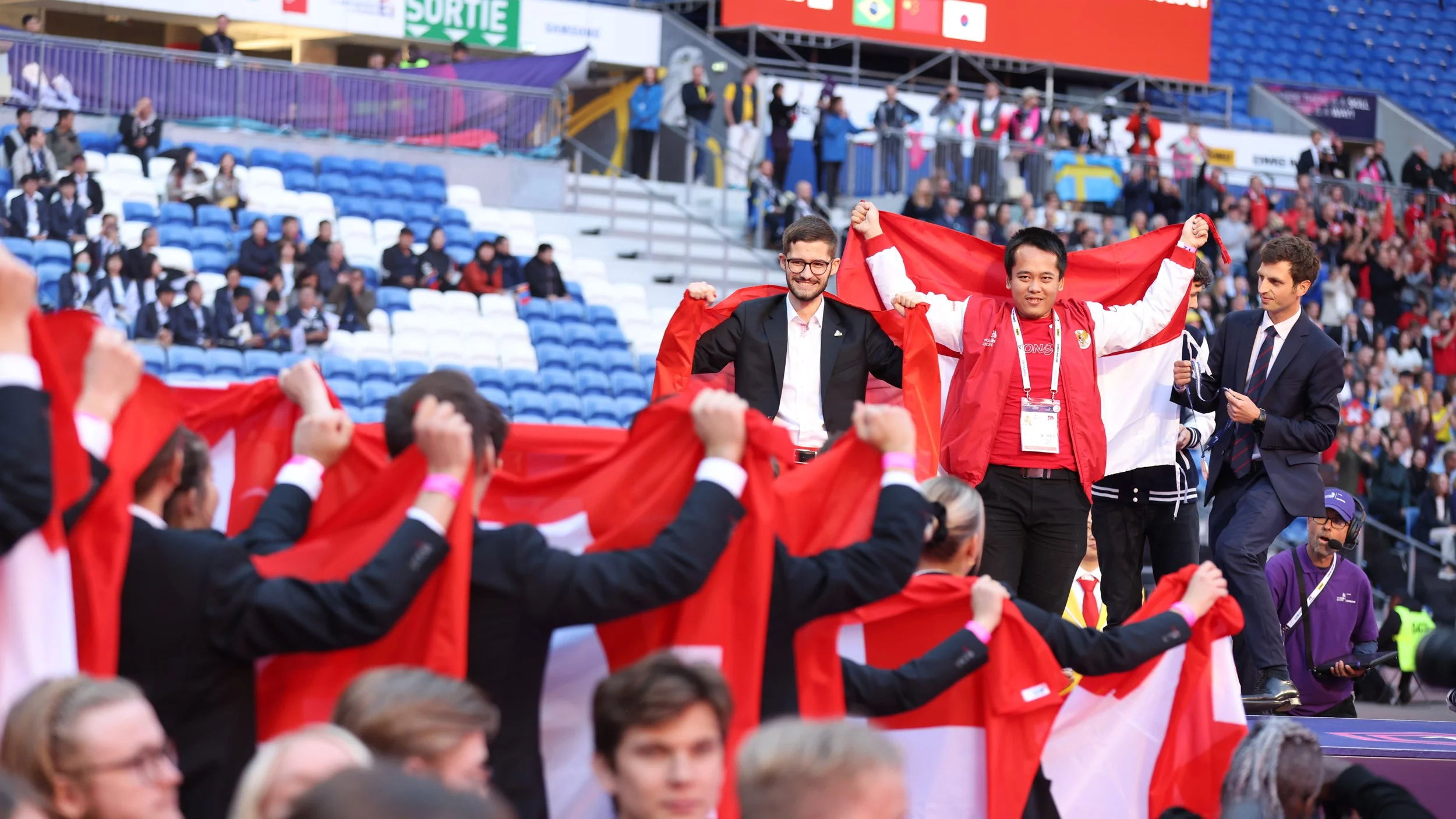 Puis est venue l’heure de la cérémonie de clôture au stade de football de Lyon. Des centaines d’électroniciens, de développeurs d’applications, de techniciens du froid et de la climatisation, de mécatroniciens et d’ingénieurs du monde entier s’agitaient: la cérémonie de remise des prix allait bientôt commencer. Tout à coup, Melvin a été pris à part par le cheffe des 45 membres de l’équipe suisse: il fallait qu’il se tienne prêt! «Et alors, tout est allé très vite, se souvient-il. J’étais sur le podium et on me remettait la médaille d’argent.» Une deuxième place aux WorldSkills: autrement dit, un immense succès!